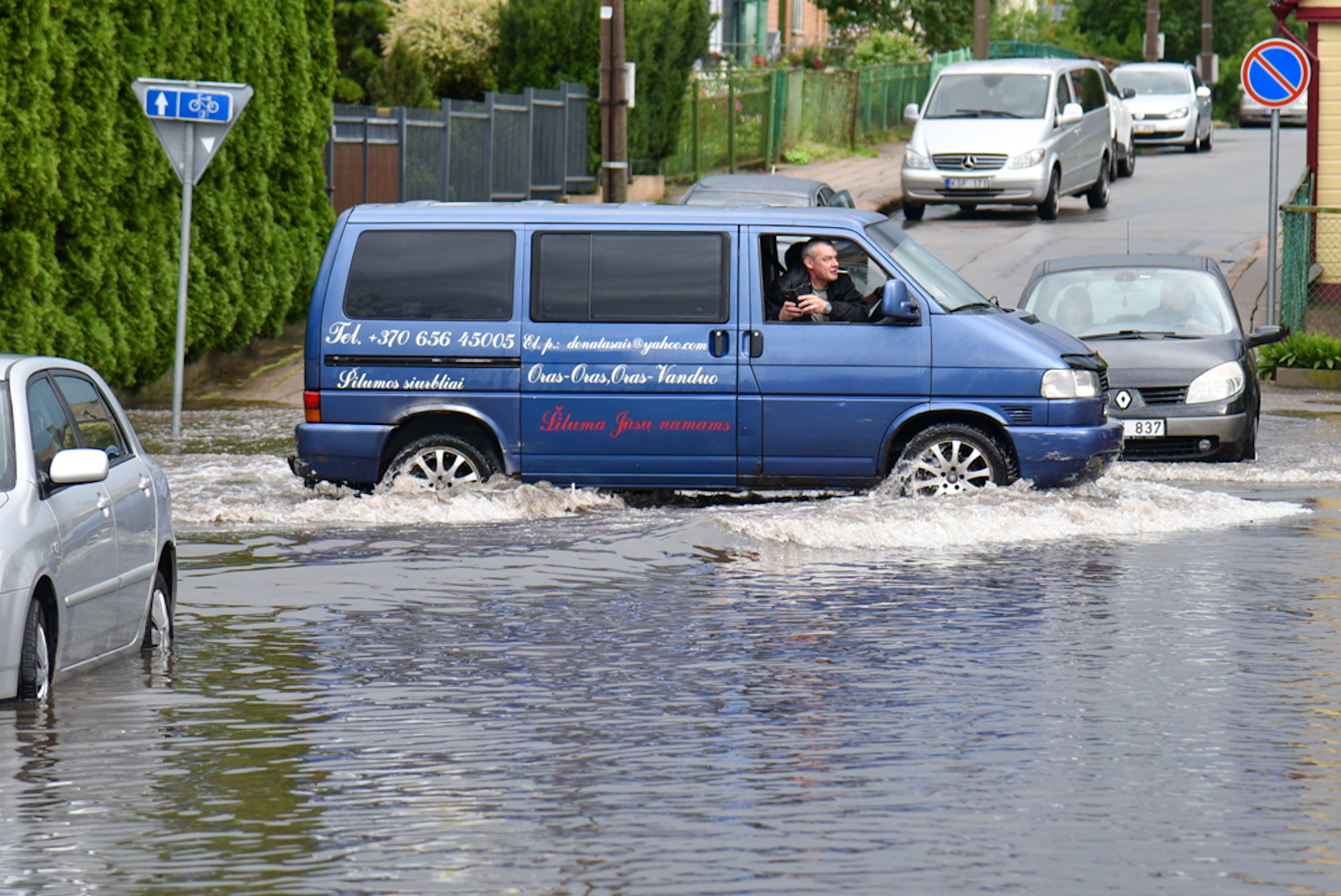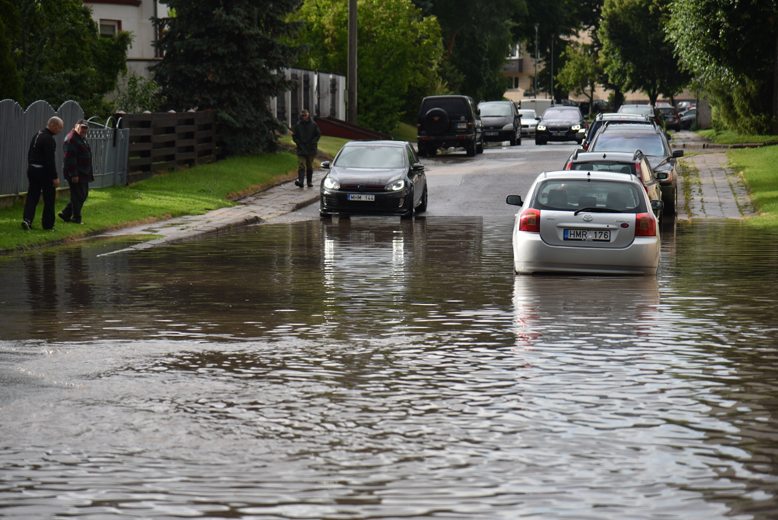 Vandenį turėję surinkti lietaus nuotekų šulinėliai kunkuliavo tarsi verdantys puodai. Vanduo sėmė automobilių ratus, vietiniams teko per vandenį bristi atsiraitojus kelnes.