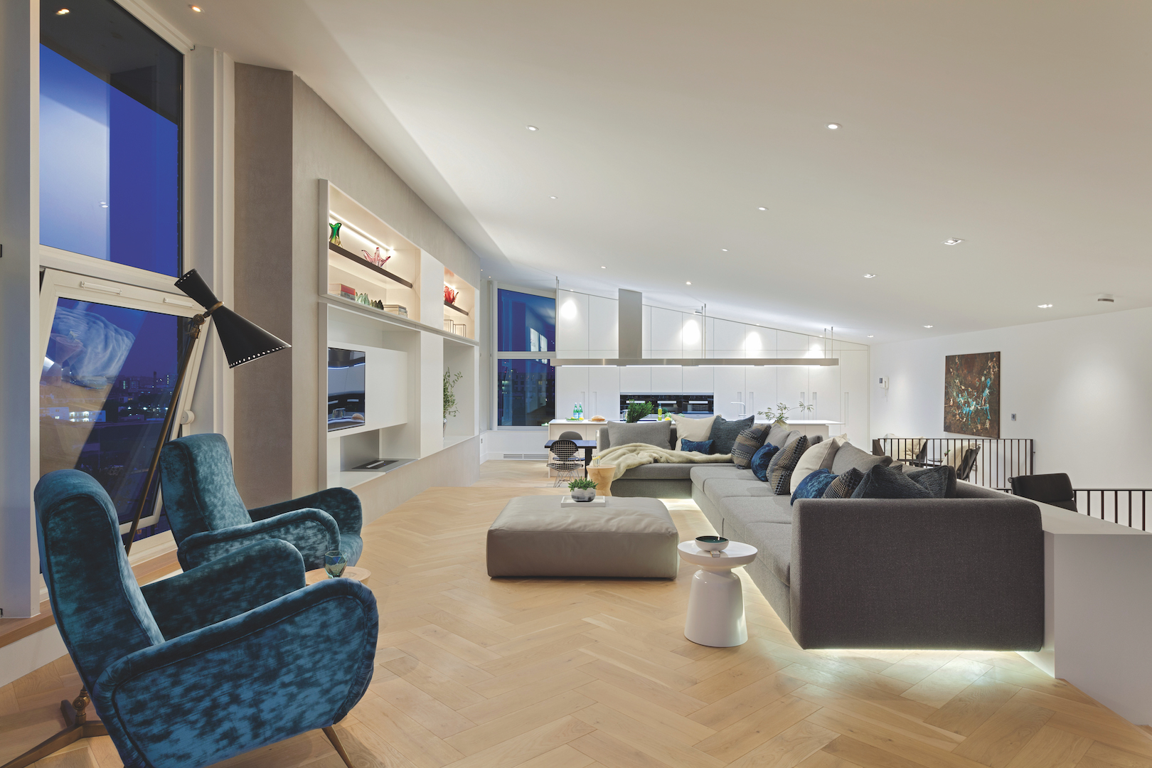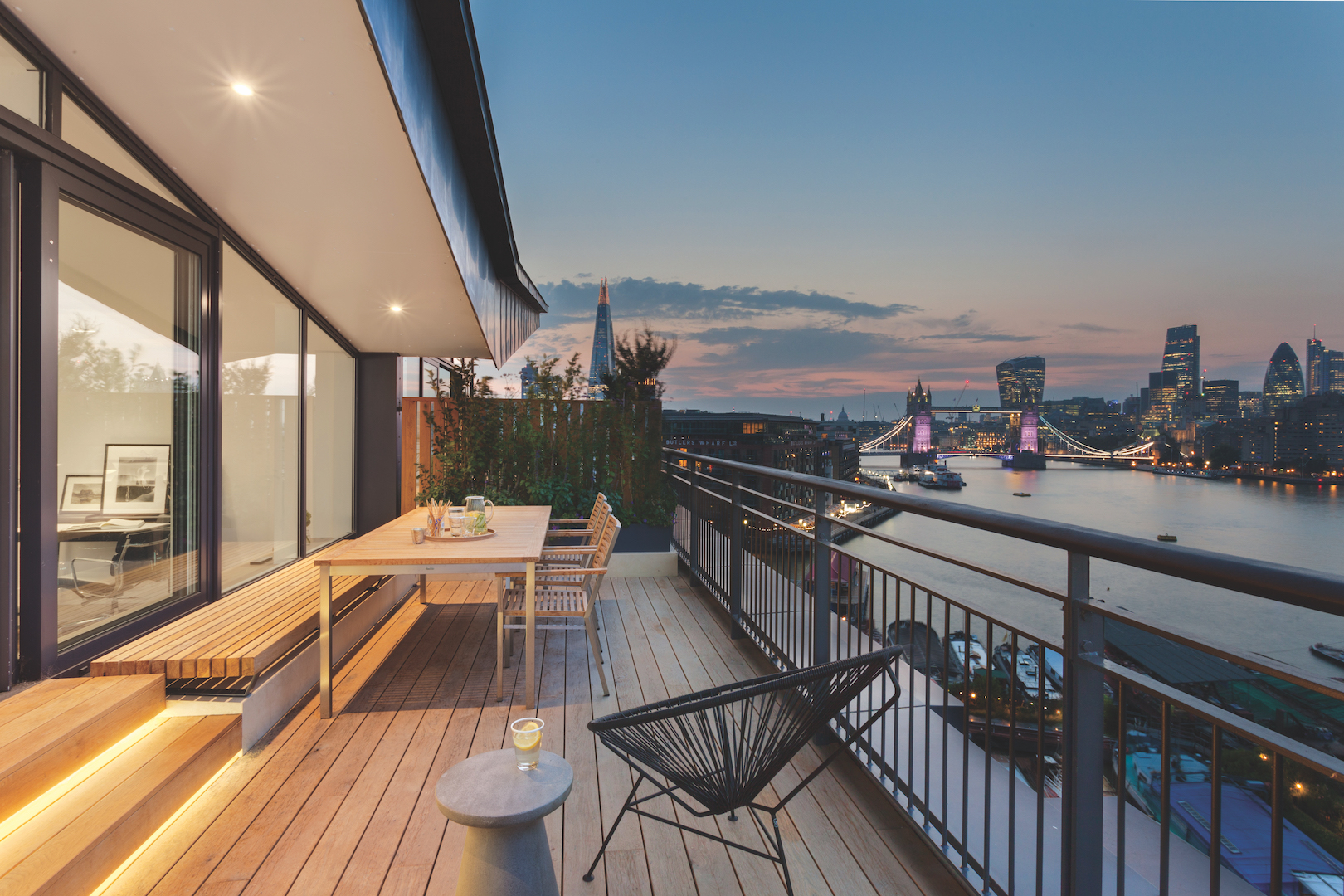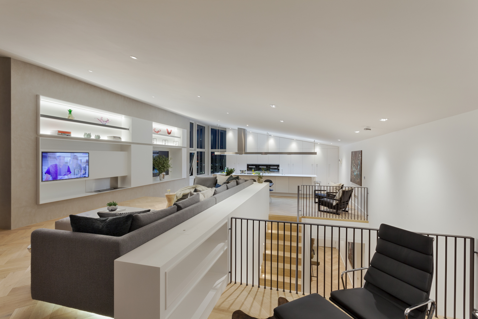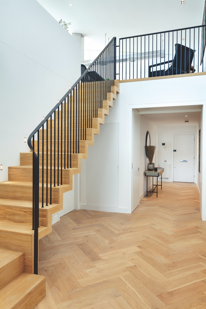 „FORMstudio“ dramatiškai pertvarkė šį 240 m2 penthauzą, viršutiniame aukšte sukurdami įspūdingą atviro plano gyvenamąją erdvę. Radikalus architektų įsikišimas padėjo racionaliai išnaudoti turimą plotą ir išryškinti pagrindinį privalumą – įspūdingus Temzės vaizdus.