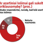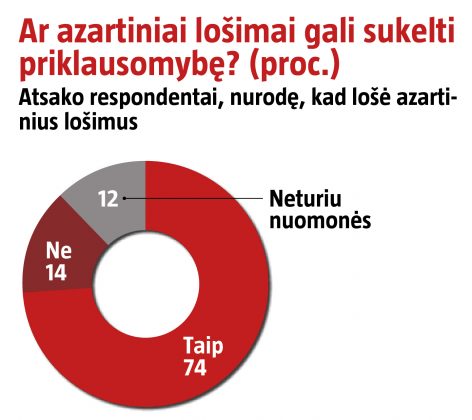 74 proc. apklaustųjų, kurie patys lošia azartinius lošimus, mano, kad tai gali sukelti priklausomybę.