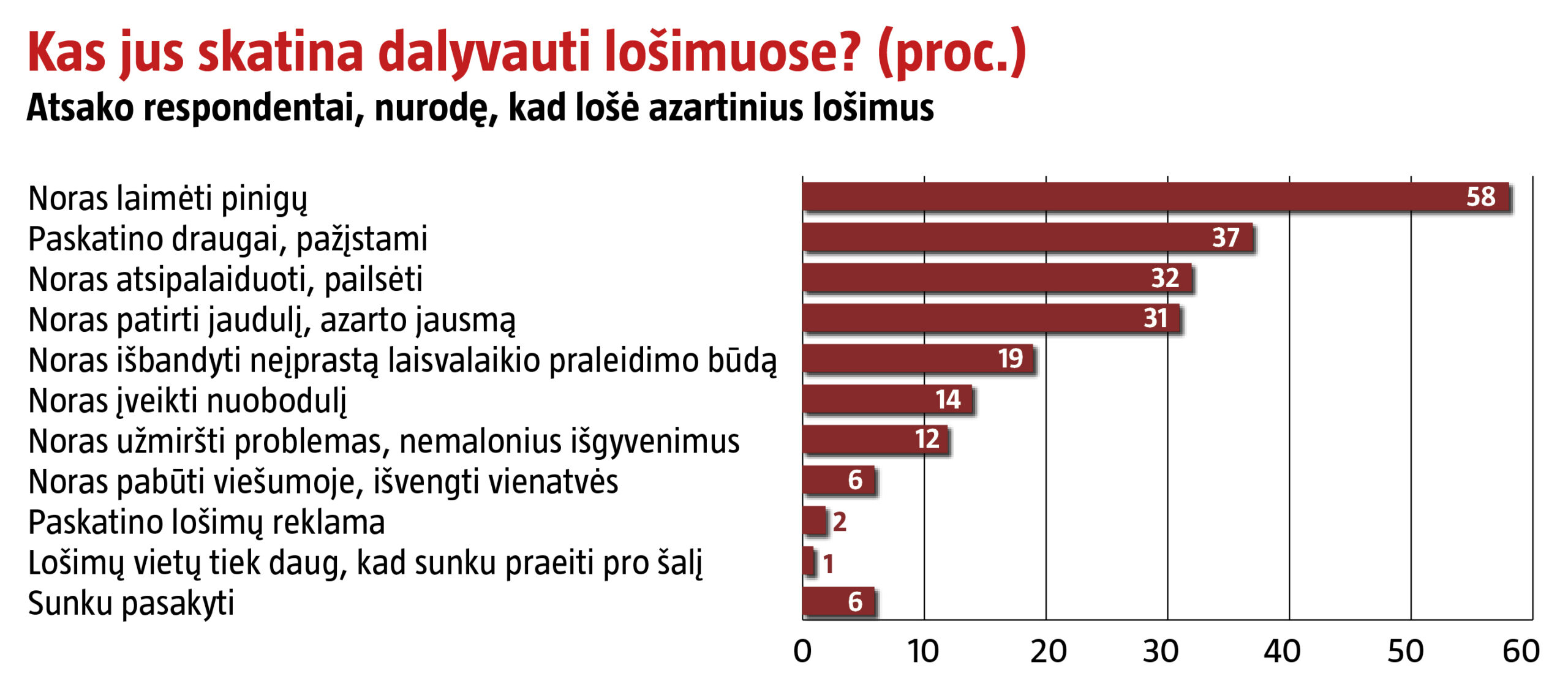 Azartinius lošimus yra lošę 13 proc. šalies gyventojų, loterijose dalyvauja 71 proc.