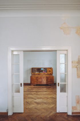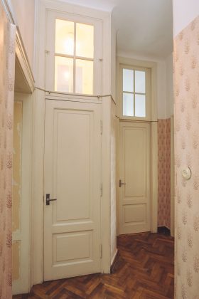 Žavingas architektūrinis efektas. Vaikštinėjant po Donelaičio ir Gedimino gatvių sankryžoje esantį daugiau nei 100 kvadratinių metrų butą, vaizduotė veikia visu pajėgumu. Nors interjeras tik pradedamas atkurti ir vis dar gerokai apsilaupęs, galvoje nejučiomis „įsijungia“ kaunietiška „Didžiojo Getsbio“ versija su elegantiškais ponais ir dekadentiškais jų gyvenimo įpročiais. Žinoma, ją kaip reikiant pakursto autentiškos aplinkos detalės: neseniai atidengta sienų tapyba su art deco stiliui būdingais lotoso ornamentais, „eglute“ sudėtas girgždantis ąžuolo parketas, aukštos lubos, stumdomos dvivėrės svetainės durys su suapvalintais kampais ir, kaip spėjama, autentišku matiniu stiklu, virtuvės ir vonios plytelės, kone lubas remiančios kambarių durys su įstiklintu viršumi. Nesunku nuspėti, kad vaizduotės mankštos vyksta ir naujųjų šio buto savininkų, į tarpukario Kauno paveldą nusprendusių investuoti verslininkų, galvose – jų entuziazmas ir noras kuo daugiau sužinoti apie savo iniciatyva ir lėšomis atkuriamą būstą pastebimas išsyk.