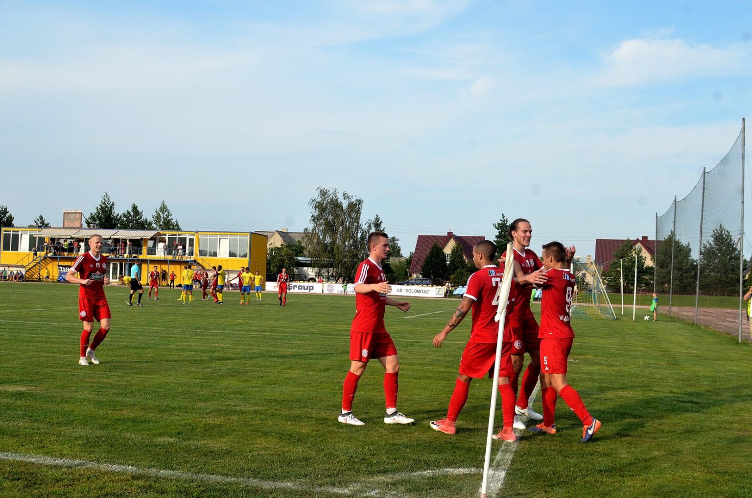 Įvartis. Komandos draugai sveikina tiksliu smūgiu pasižymėjusį T. Salamanavičių (dešinėje).