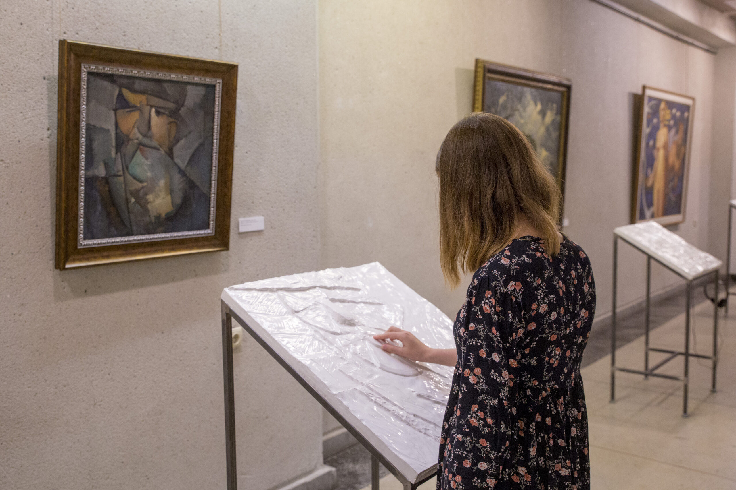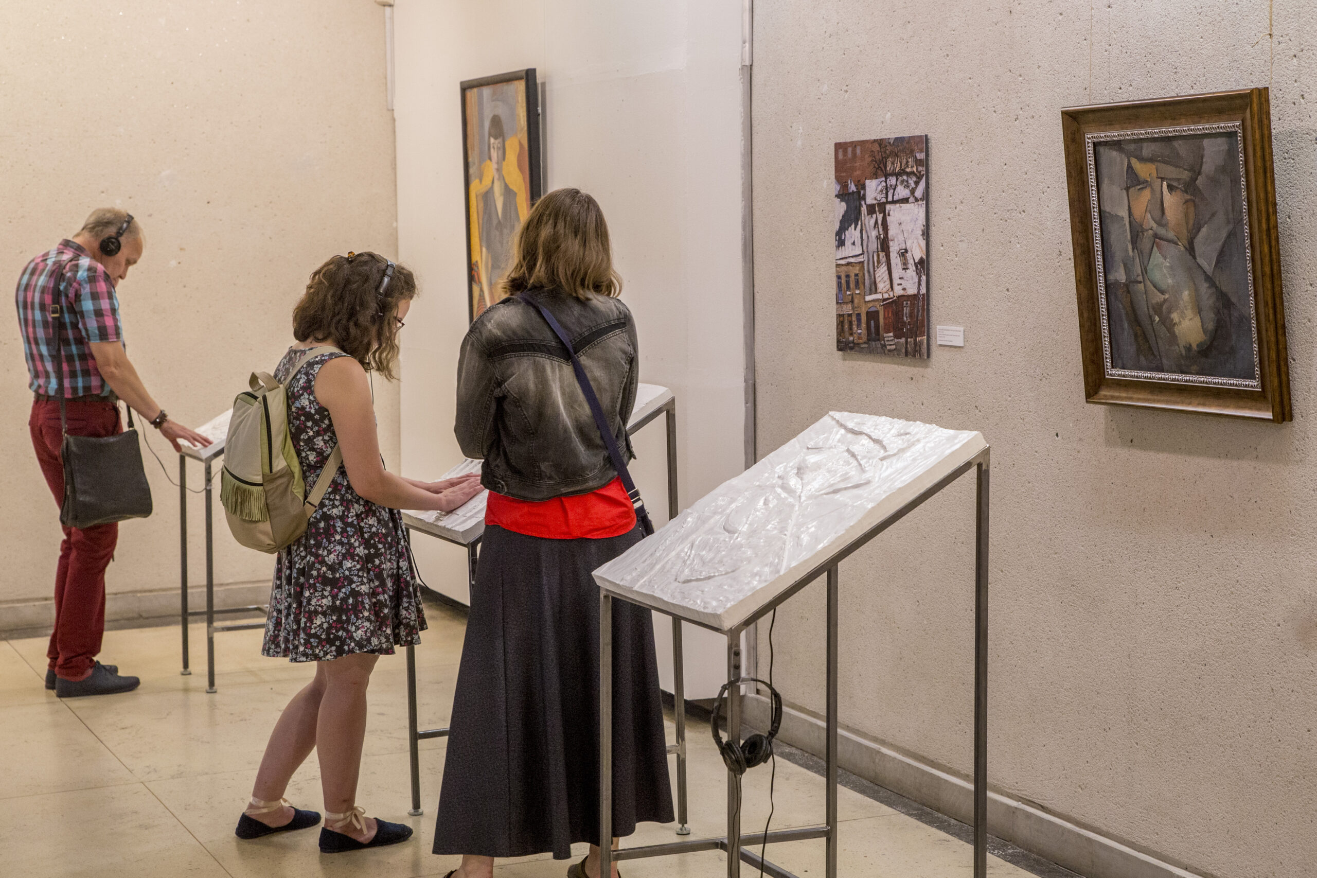 Parodos darbai neįprasti tuo, kad ekspozicijoje pristatomi ne tik paveikslų originalai, bet ir taktilinės jų reprodukcijos. Šiuos reljefinius kūrinius galima liesti ir taip suprasti paveikslo turinį.