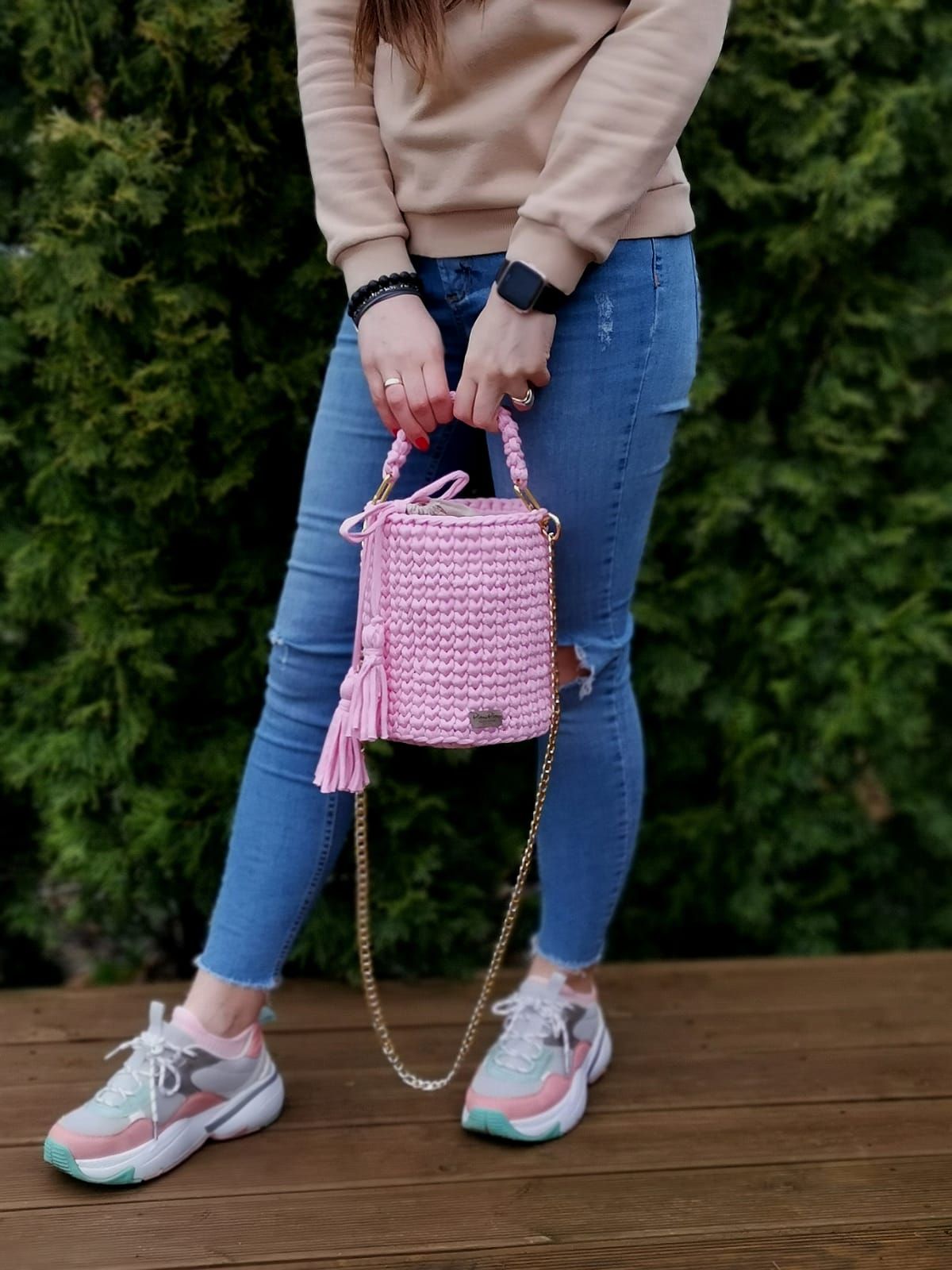 Tuomet jos akys užkliuvo už nertos rankinės iš antrinių žaliavų. Lietuvoje tokios tuomet dar nebuvo dažnai nešiojamos, bet Vakaruose jau populiarios.