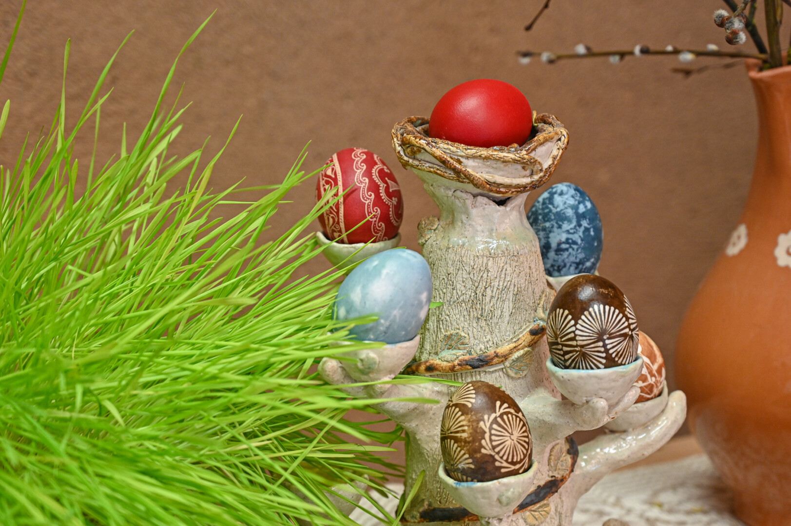 Pupų ankštys kiaušinius nuspalvina tamsiai rudai, šieno pakratai ar beržo vantos lapai – gelsvai. Tačiau šioms spalvoms išgauti taip pat prireikia nemažai laiko, o šiuolaikiniai žmonės nori greito rezultato. A. Sidorovienė džiaugiasi, kad dabar, kai pilna informacijos apie kiaušinių marginimo būdus, žmonės mielai vėl atranda tradicinius.