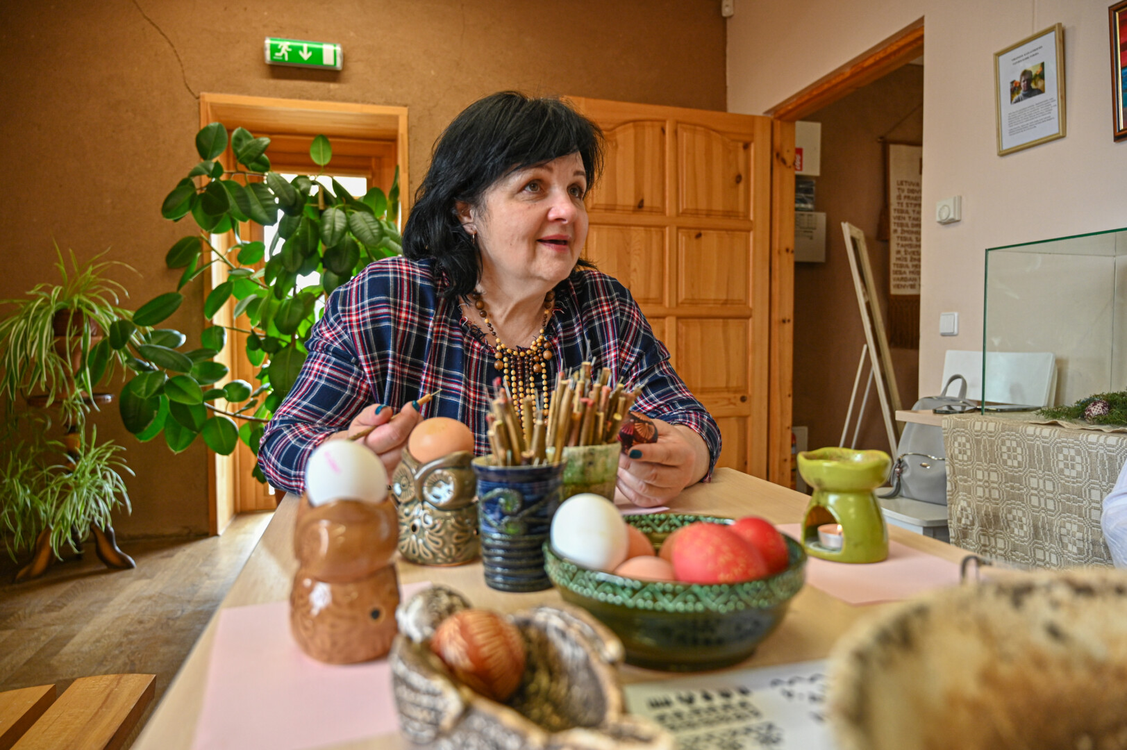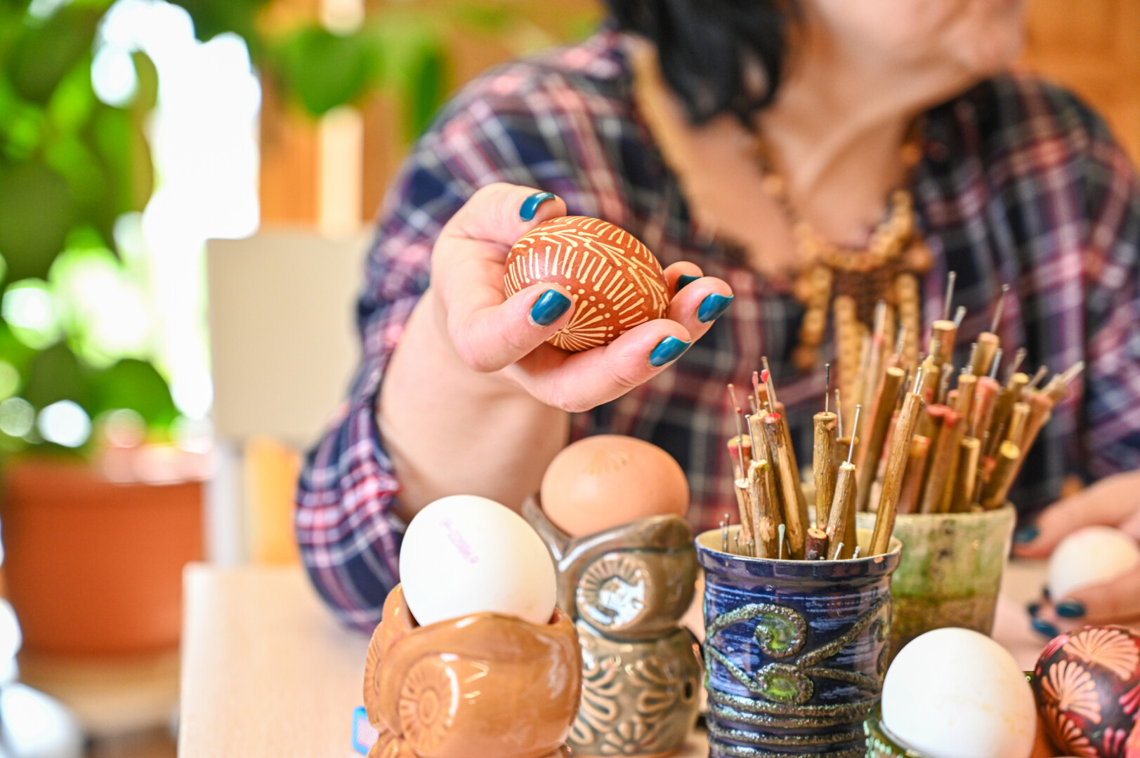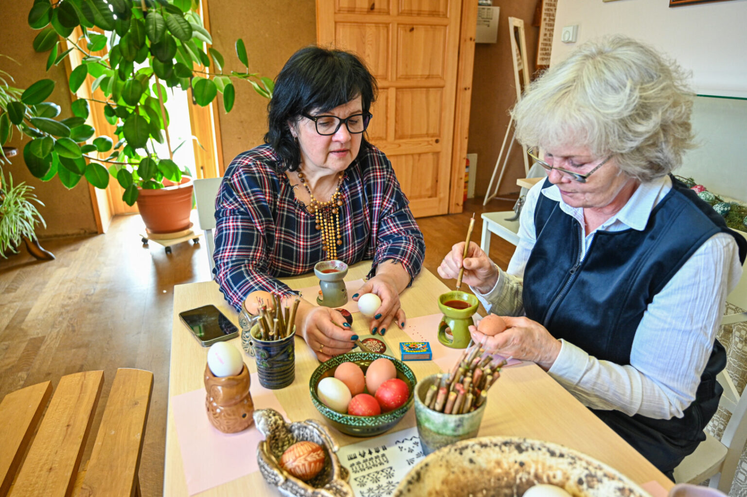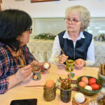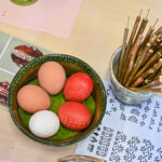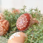 „Mano labai mėgstamas būdas. Kai margini vašku, aiškiai matai, koks raštas, o dažant su augaliukais – netikėtumas, kaip atrodys, kai išimsi“, – velykinės staigmenos ir šįmet laukia A. Sidorovienė.