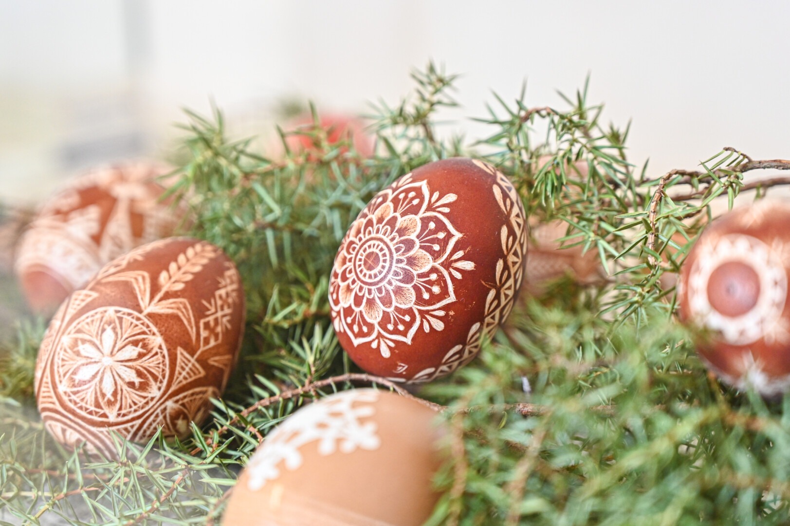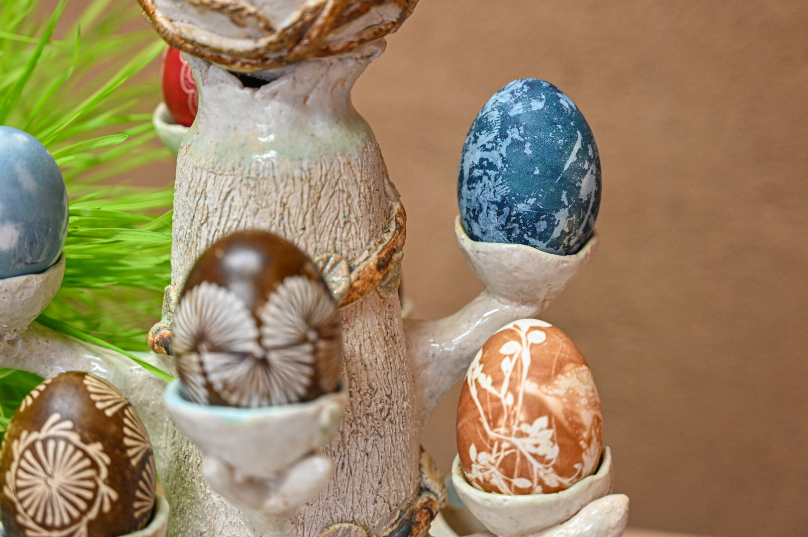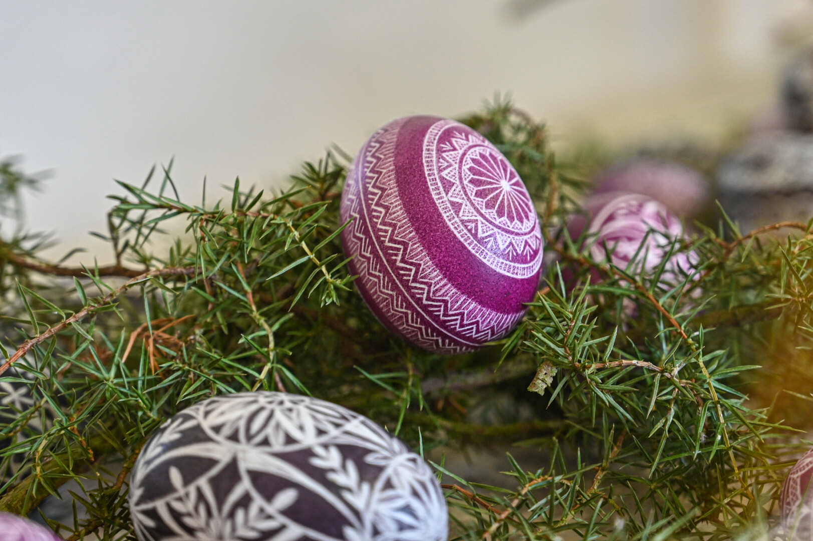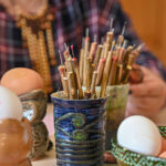 „Mano labai mėgstamas būdas. Kai margini vašku, aiškiai matai, koks raštas, o dažant su augaliukais – netikėtumas, kaip atrodys, kai išimsi“, – velykinės staigmenos ir šįmet laukia A. Sidorovienė.