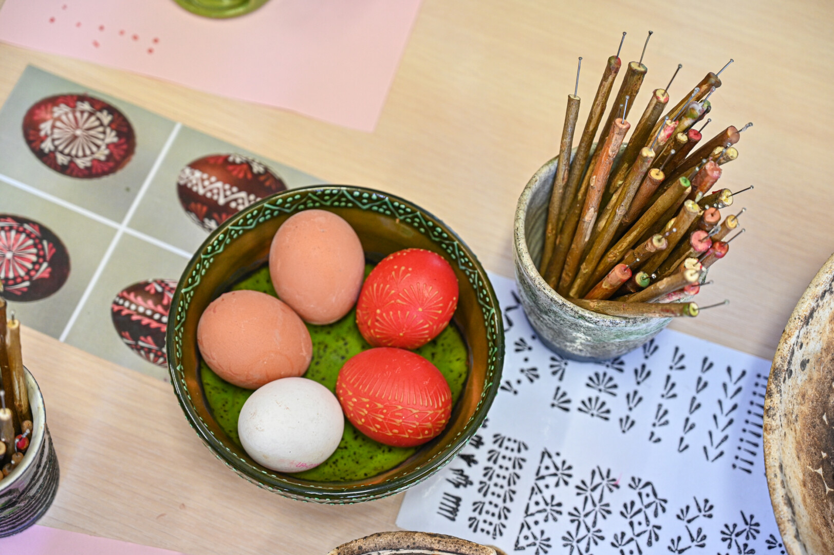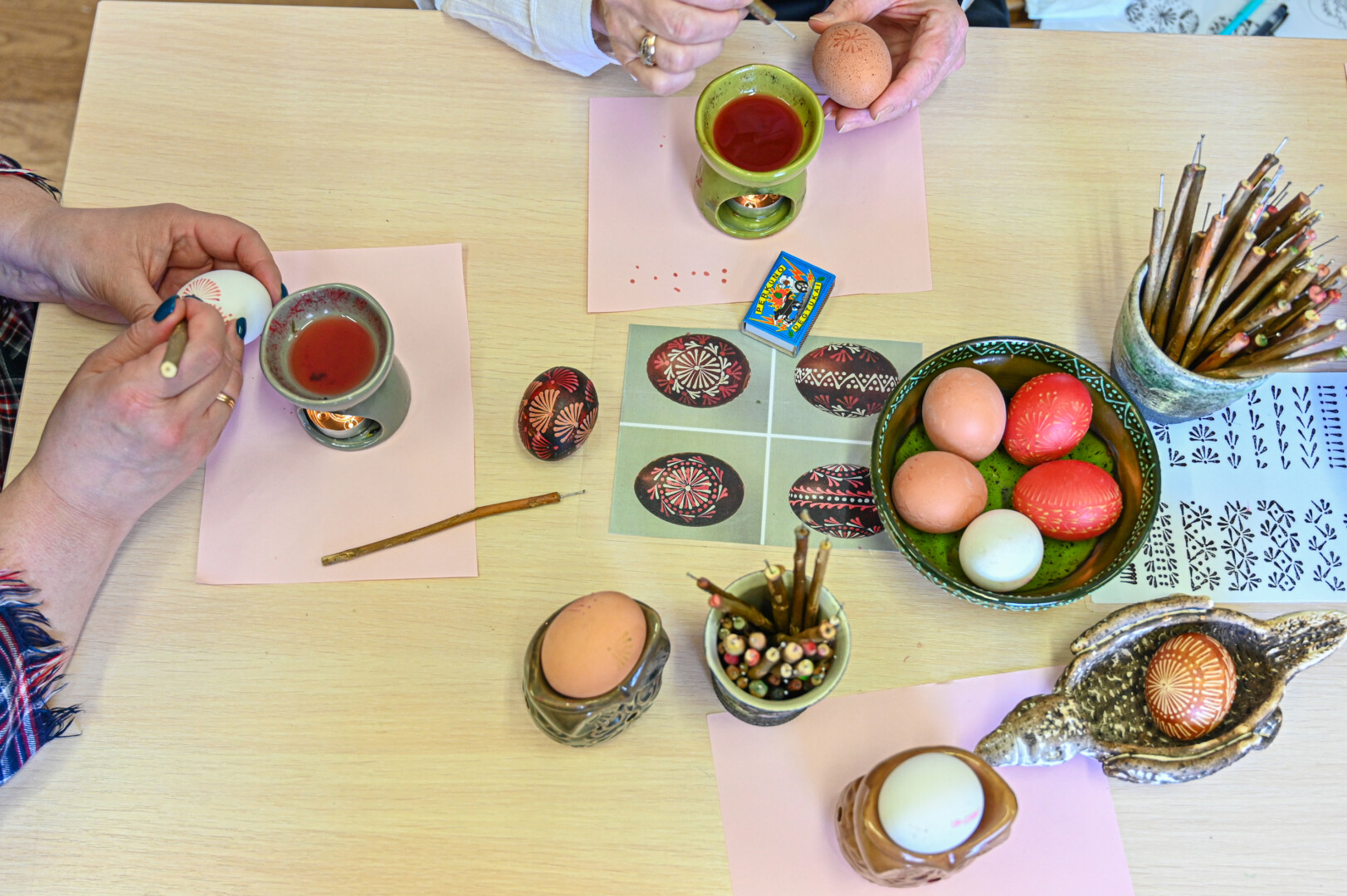 Iš pradžių galima pabandyti piešti ant popieriaus. Ir pataria nesvajoti, nes vaškas labai greitai stingsta. A. Sidorovienė išduoda ir dar vieną gudrybę. Kad piešiant nedrebėtų ranka, reikia į kiaušinį atremti mažąjį pirštelį.