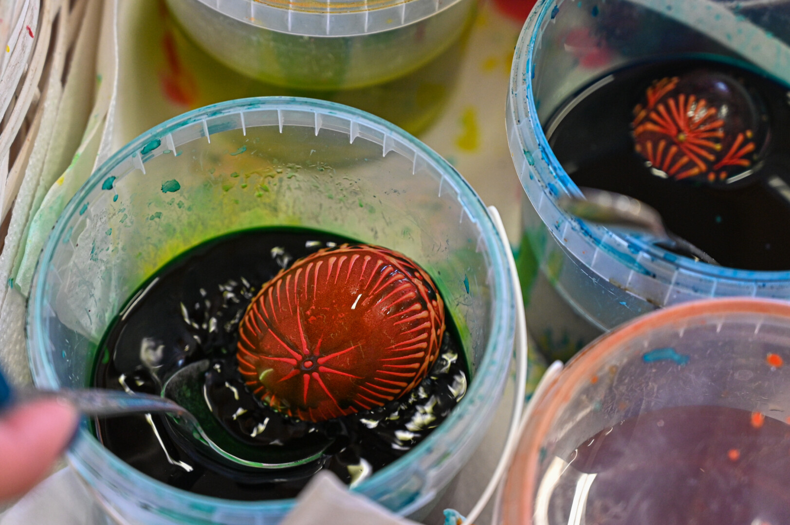 Dažant natūraliais dažais neretai prireikia nemažai laiko, kad augalų nuoviras gerai „nukąstų“ kiaušinį.