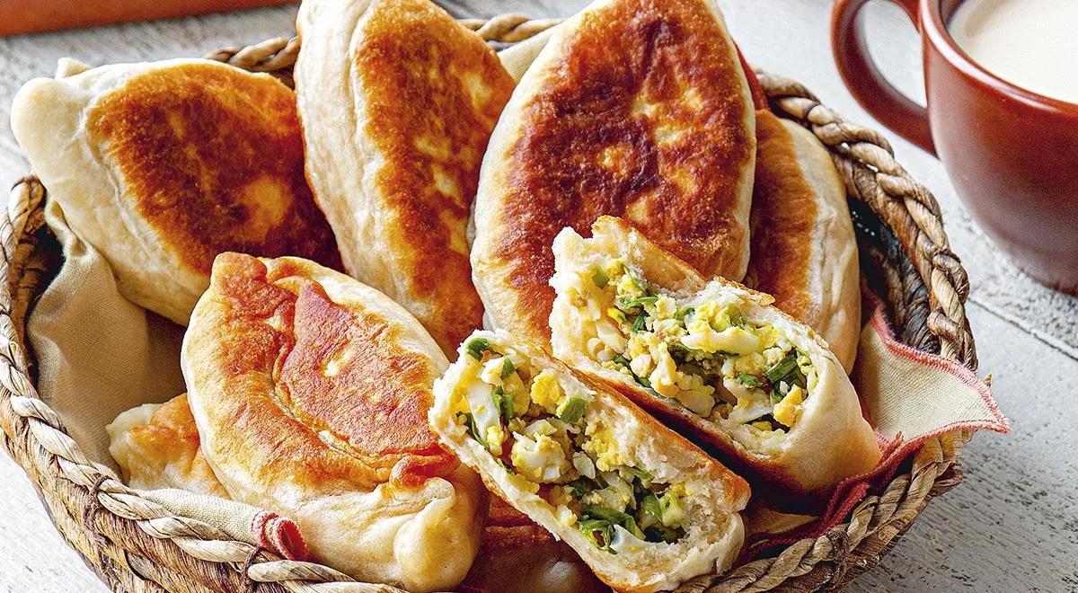 Reikės (10 porcijų): 1 kg miltų, 400 ml aliejaus (kepti), 4 šaukštų aliejaus (tešlai), 1 šaukšto cukraus, 2 šaukštelių sausų mielių, 0,5 šaukštelio druskos; įdarui: 4 virtų kiaušinių, 150 g svogūnų laiškų, druskos.
