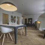 Realizuotoje naujakurio vizijoje penkių kambarių butas virto trijų, be to, buvo įrengti du vonios kambariai. Vos įžengus pro duris patenkama į maždaug 80 kv. m ploto bendrą svetainės ir virtuvės zoną. Dešiniau esantis šiek tiek lenktas koridorius veda į darbo kambarį – čia kol kas daugiausiai vietos užima kalnas aktyvaus laisvalaikio amunicijos – ir miegamąjį su drabužine ir vonios kambariu.