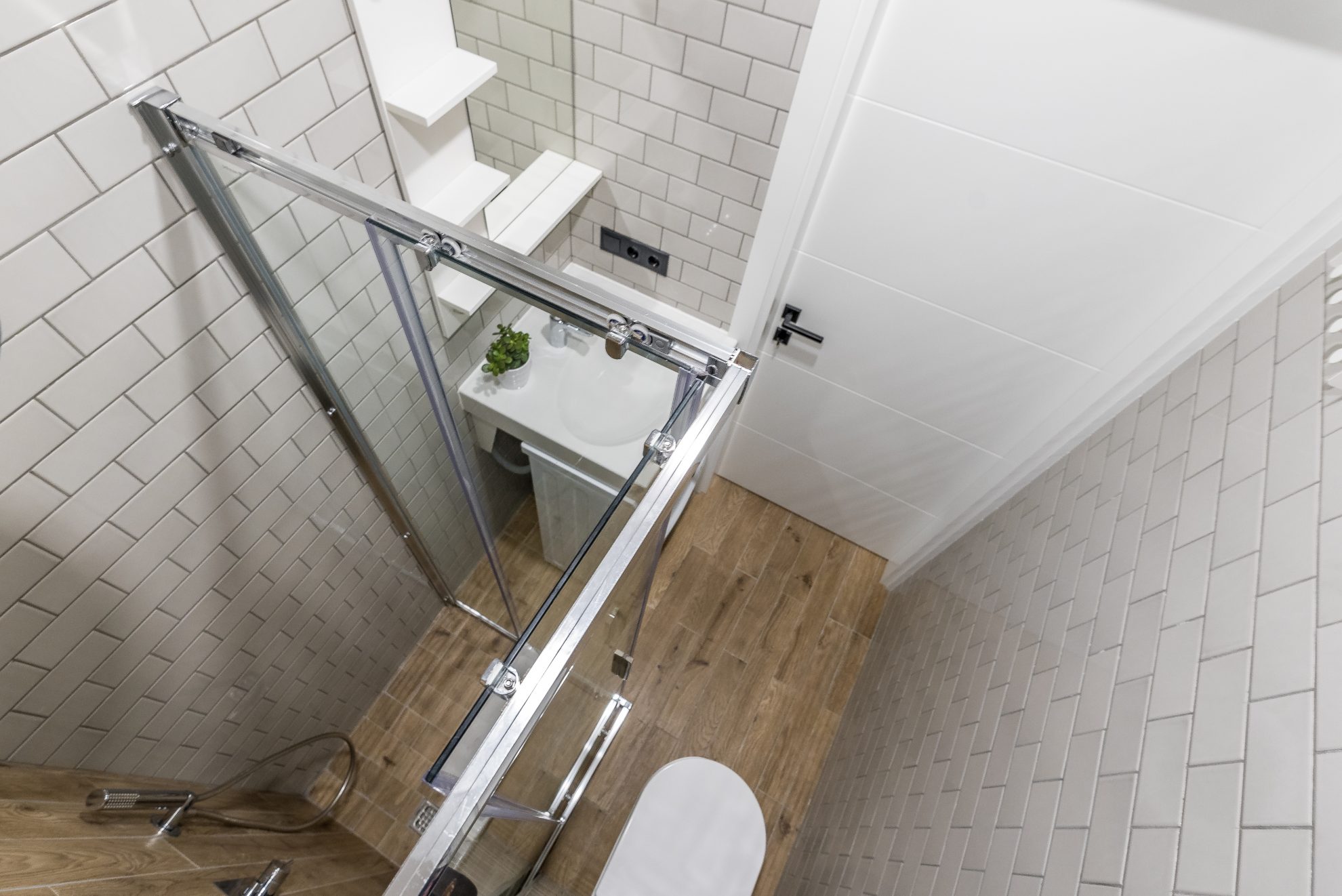 Vonios kambaryje yra visi standartiniai patogumai – tualetas, kriauklė ir dušas. Tiesa, dušo kabiną teko šiek tiek „apipjaustyti“ – vietoje standartinės 90×90 cm buvo įrengta 80×80 cm – kaip sako D. Sakevičė, pakankamai patogi vienam žmogui. Viską apmąsčius į vonios kambarį tilpo ir skalbimo mašina – ji įsitaisė po kriaukle.