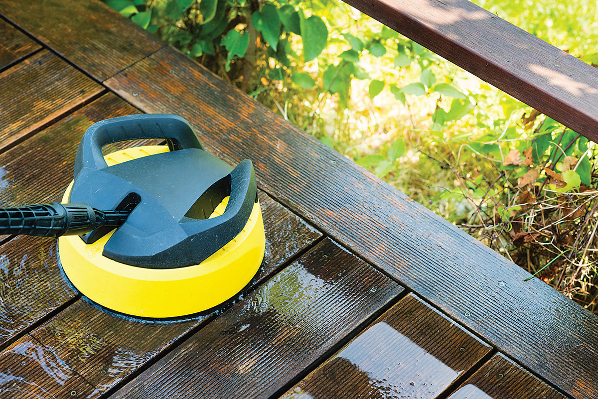 Medinės terasos jokiu būdu negalima valyti smėliasrove, o plaunant aukšto slėgio įranga, – naudoti specialų antgalį, skirtą terasoms plauti; jei slėgį galima reguliuoti, geriau rinktis vidutinį ar žemesnį.
