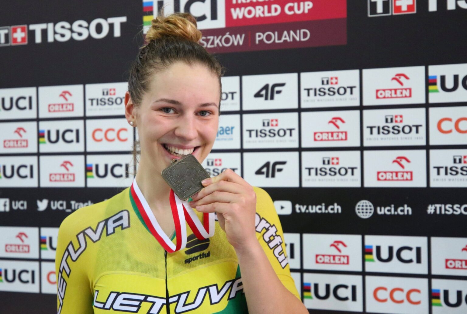 Penktadienį Pruškove (Lenkija) prasidėjo 2017-2018 metų sezono pasaulio dviračių treko taurės varžybų pirmasis etapas. Jau pirmą varžybų dieną medaliu pasipuošė Lietuvos atstovė Olivija Baleišytė. Tik antrą kartą pasaulio taurės varžybose dalyvaujanti 19-metė panevėžietė pelnė bronzą skrečo rungtyje – 40 ratų, 10 km lenktynėse (23 dalyvės).