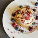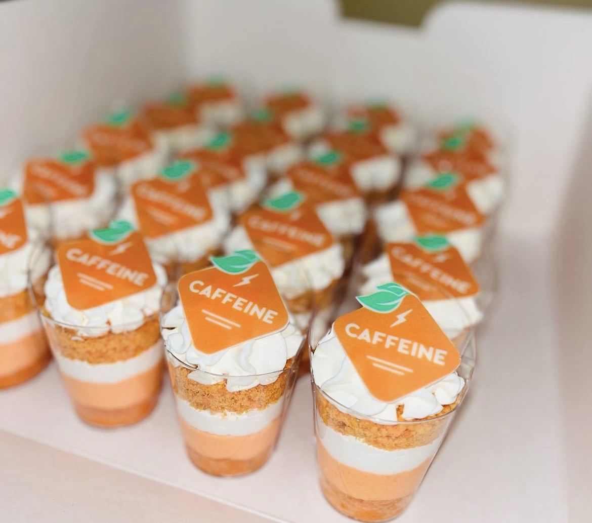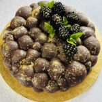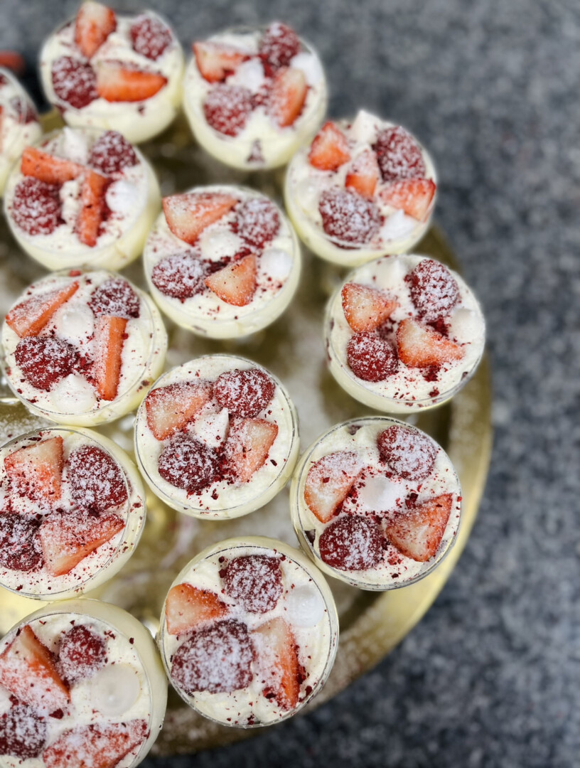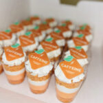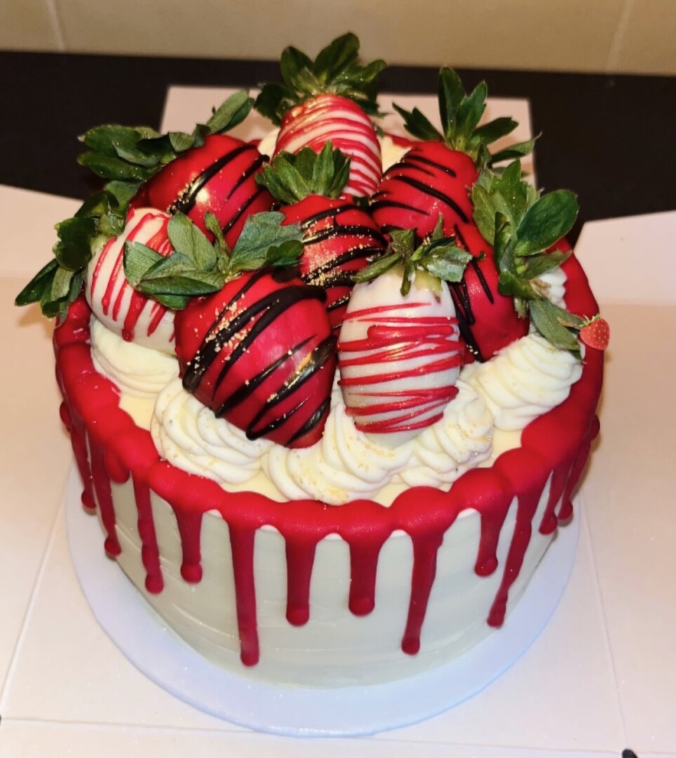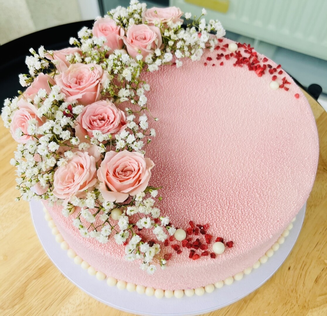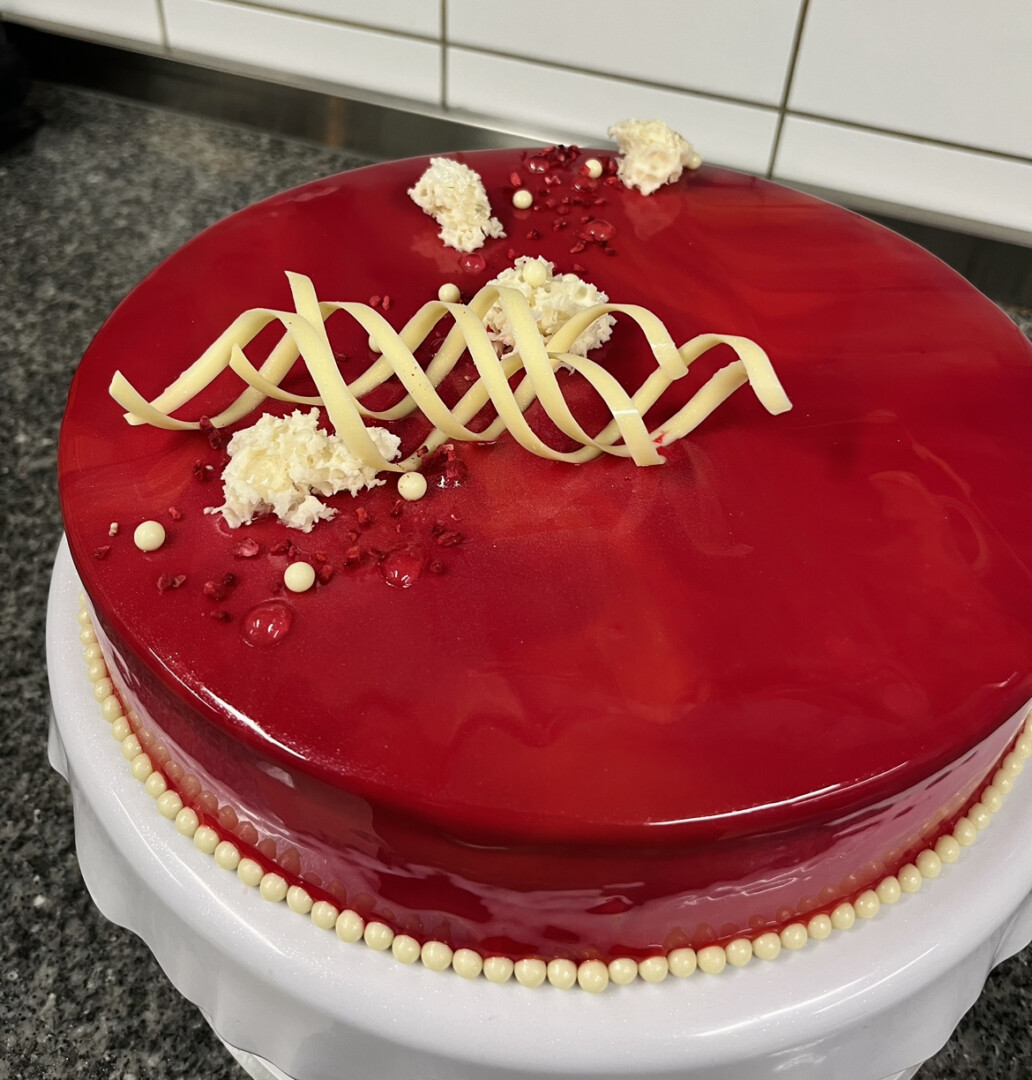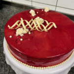 O išskirtinis šios talentingos konditerės kepinys – jogurto putėsių tortas su kokosiniu biskvitu, traškučiu, mango bei braškių įdarais.