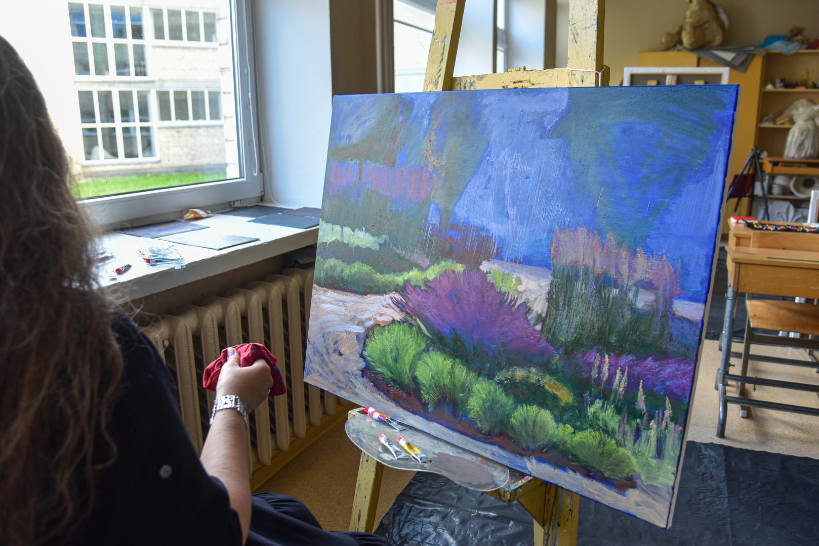 Toje pačioje Dailės mokyklos klasėje kūrusi ukrainietė O. Svizhak pasakojo pasisėmusi gerų įspūdžių.
