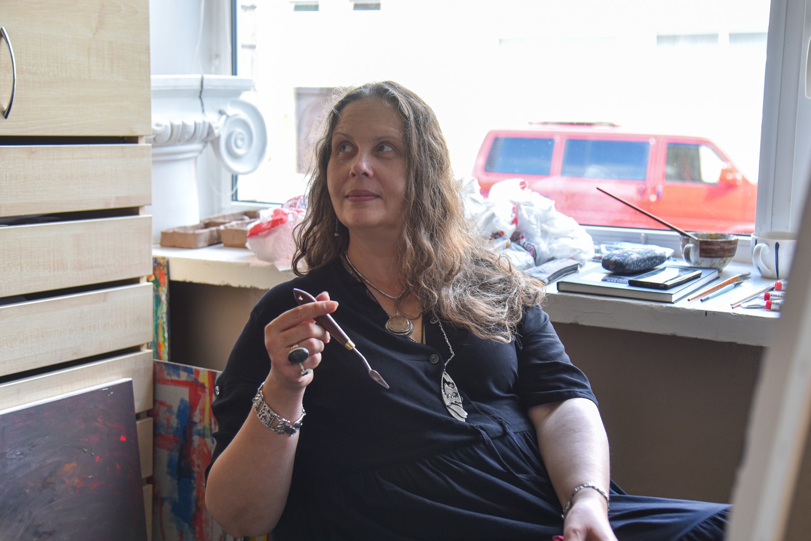 „Gyvenu Horenkoje, mažame miestelyje netoli Kijevo. Panevėžyje lankausi antrą kartą, įdomu pamatyti atsinaujinusį miestą, Senvagę, galerijas. Man patinka Panevėžys, čia susipažinau su daug įdomių menininkų“, – įspūdžiais dalijosi tapytoja iš Ukrainos Svetlana Briniuk.