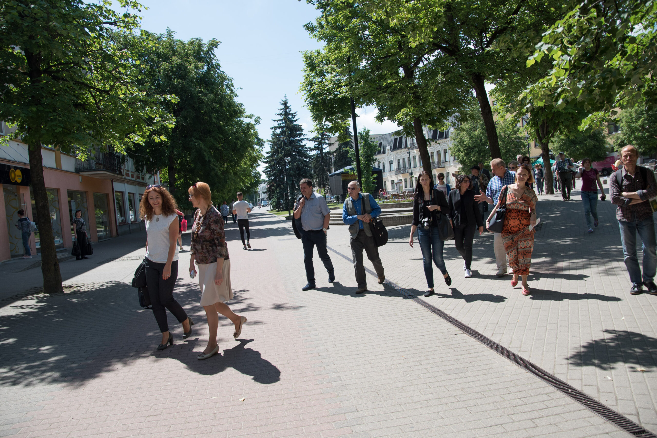 Iš autobusų stoties susirinkusieji žingsniavo į Panevėžio miesto apylinkės teismą, kurio antrame aukšte galima pamatyti teisingumą vykdančiai institucijai itin tinkantį simbolinį – A. Repšio „Herbą“. Toliau – Panevėžio miesto savivaldybė, kolegija, Muzikinis teatras, Dailės galerija, Panevėžio apskrities Gabrielės Petkevičaitės-Bitės viešoji biblioteka, Turizmo informacinis centras, Bendruomenių rūmai, Teritorinė ligonių kasa, Juozo Balčikonio gimnazija, Fotografijos galerija, Kraštotyros muziejus, Panevėžio rajono savivaldybė.