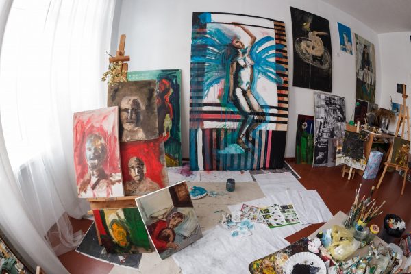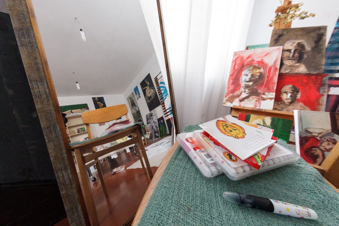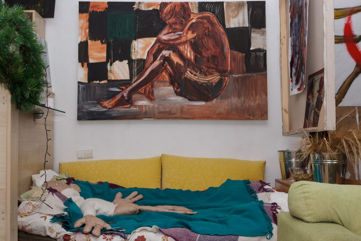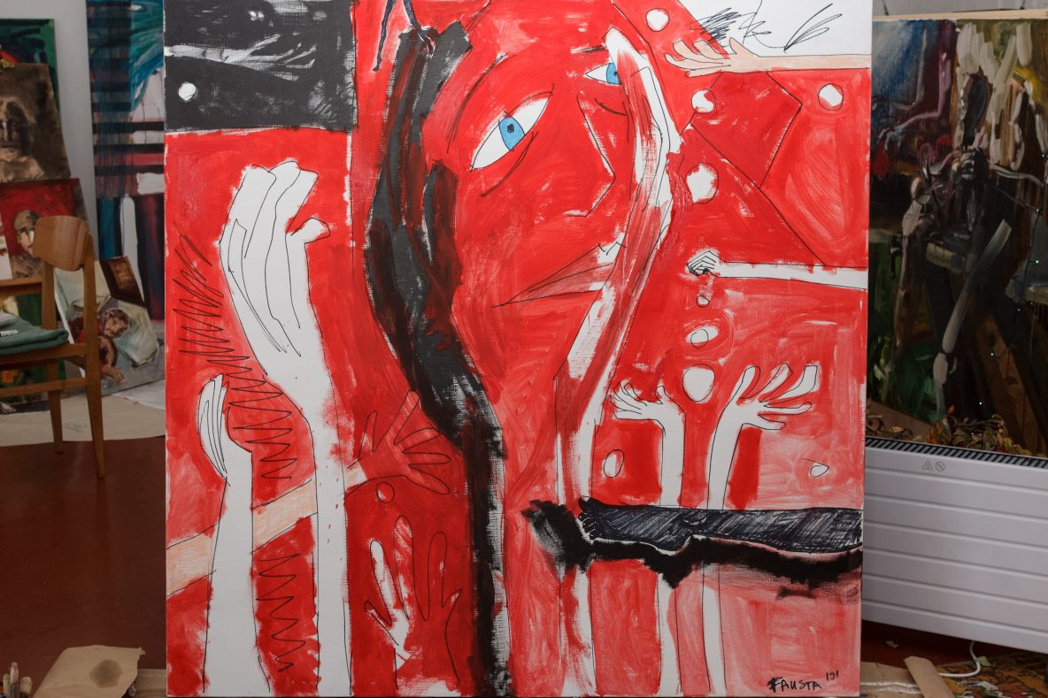 Vos įėjus į Faustos studiją, į akį krenta gausybė paveikslų. Didžioji dalis – tapyti jos pačios, keli – mamos, brolio.