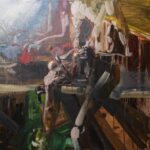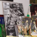 Įvairaus formato, kolorito, siužeto paveikslai nugulę ir sienas, ir grindis bei palanges.