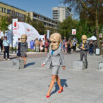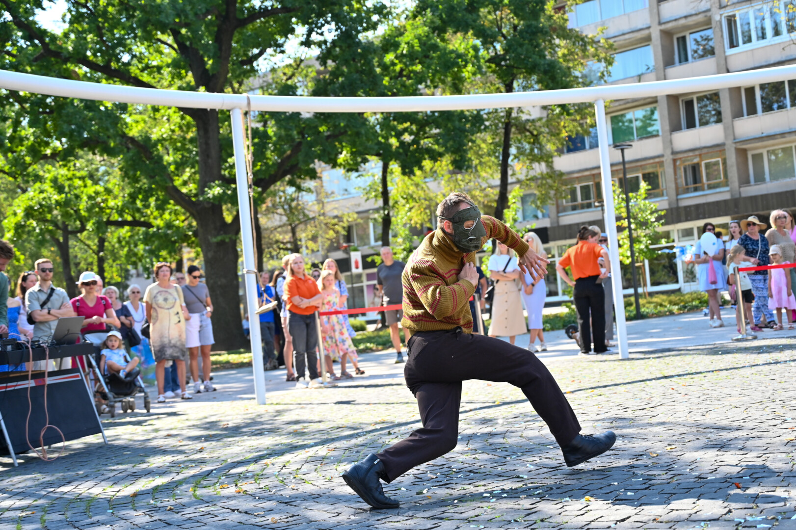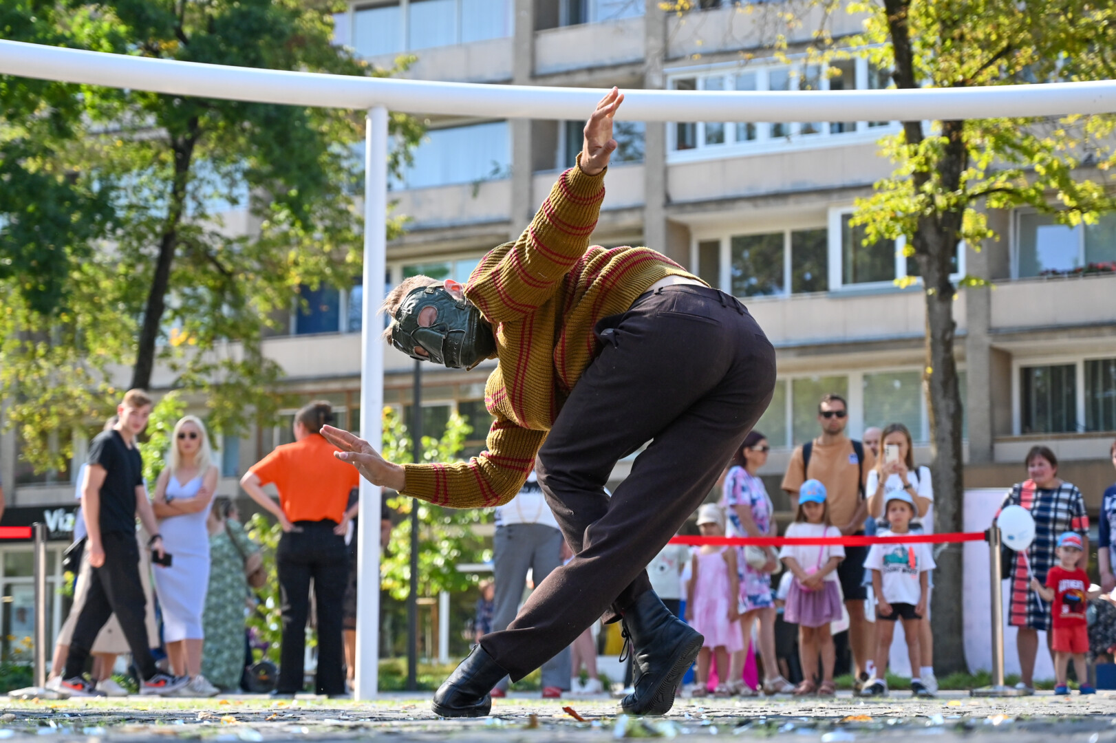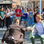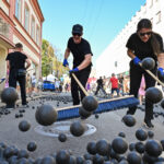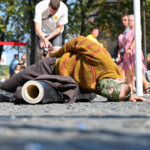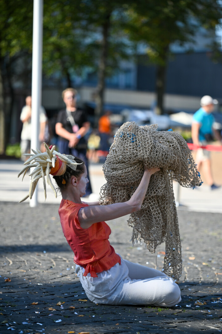 Prie šokio spektaklio „Žmogus mėnulyje“ sustojęs panevėžietis Mindaugas pasakojo atklydęs čia nuo mugės – iš tolo akį patraukė neįprastas reginys.