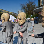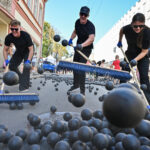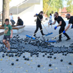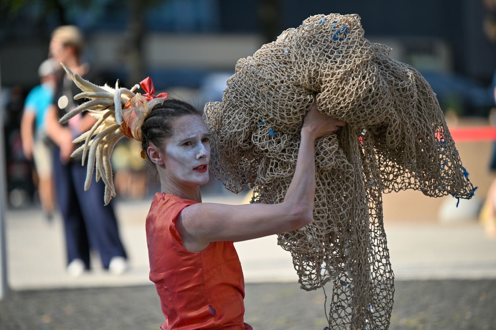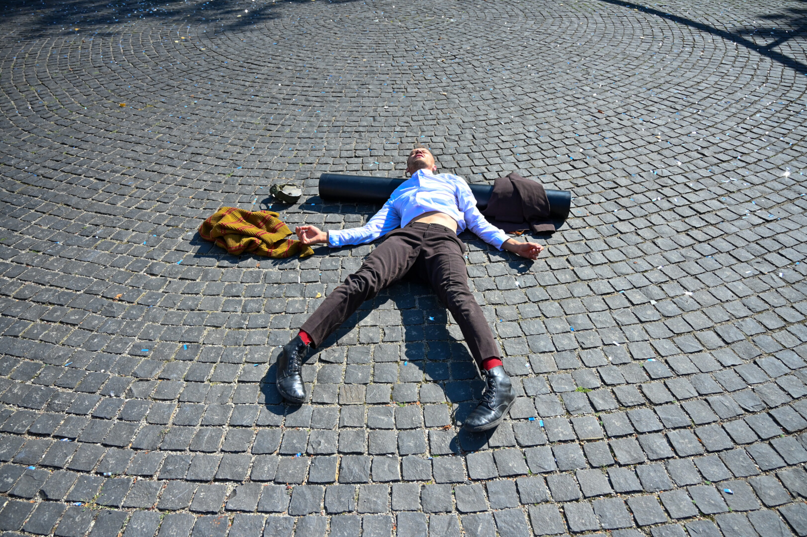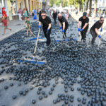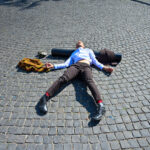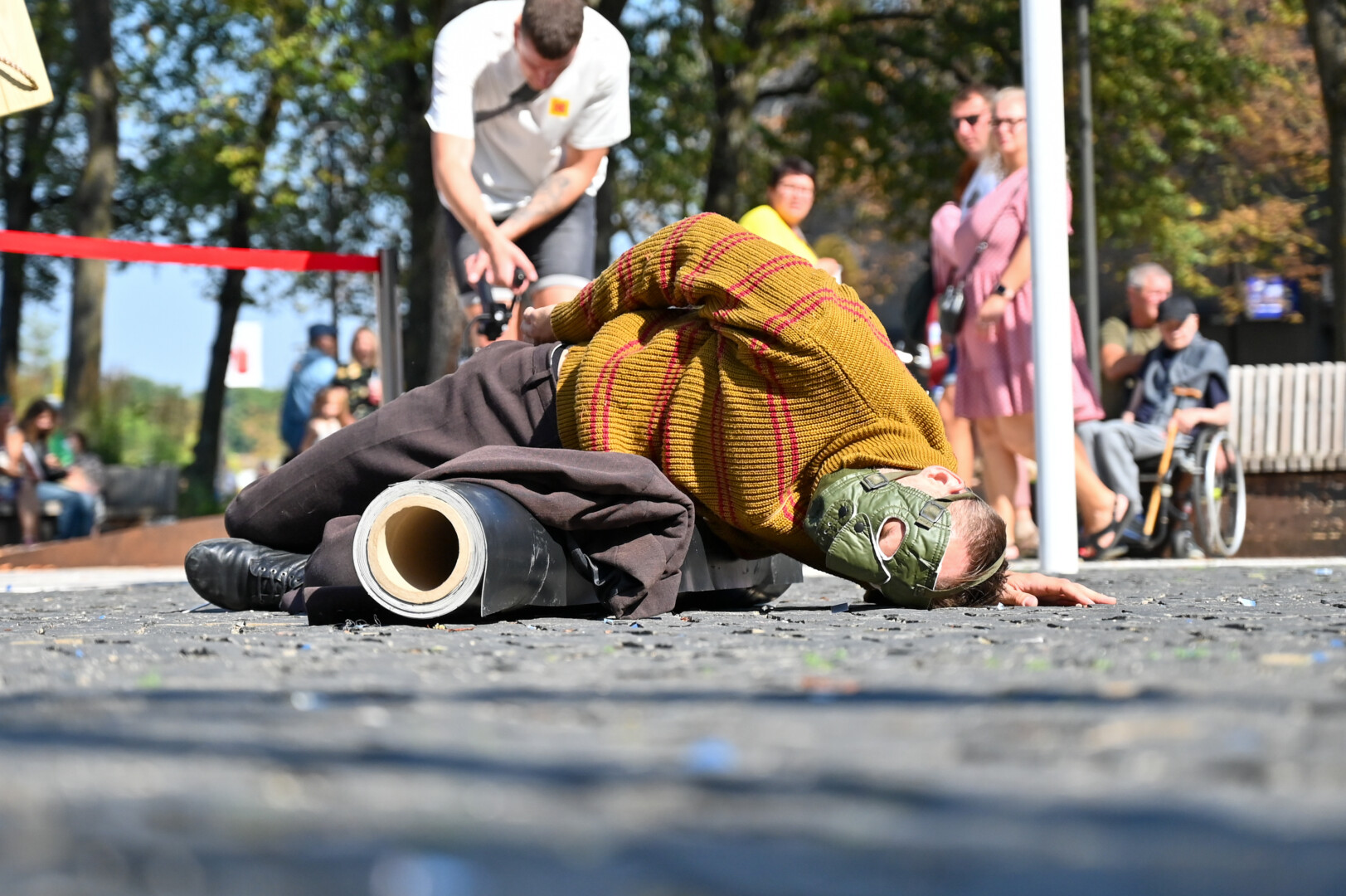 Prie šokio spektaklio „Žmogus mėnulyje“ sustojęs panevėžietis Mindaugas pasakojo atklydęs čia nuo mugės – iš tolo akį patraukė neįprastas reginys.
