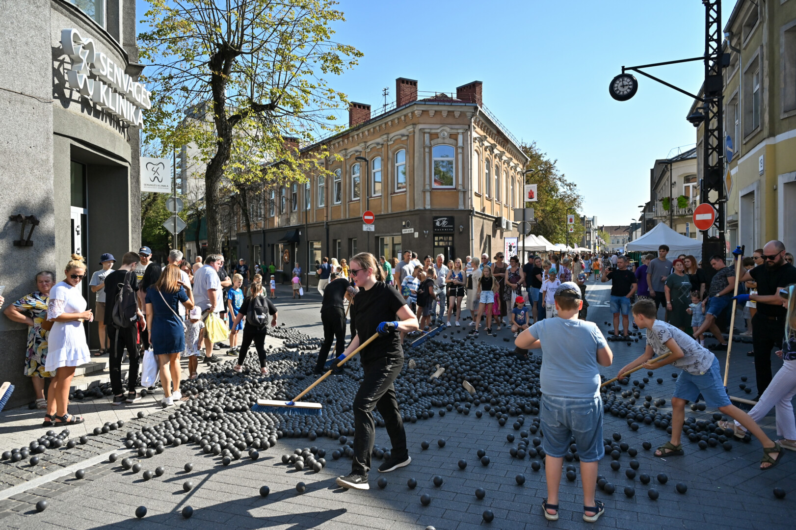 Šiemet kviečiama švęsti „Meno ritmu“, tad miesto erdvėse jau nuo ryto šurmuliuoja meninių performansų, parodų bei edukacijų dalyviai.