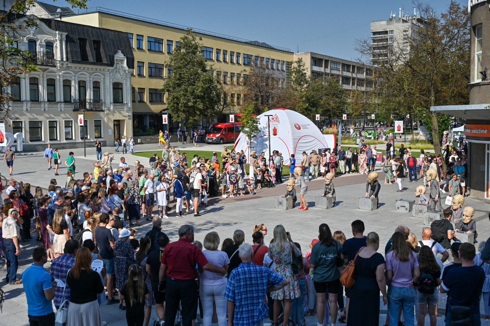 Nuo pat šeštadienio ryto miesto centras tapo panevėžiečių susibūrimo vieta. Vieni atvyko į Laisvės aikštę pasižiūrėti Panevėžio lėlių vežimo teatro spektaklio „Liūdna linksma pasaka“, kiti domėjosi Karaliaus Mindaugo husarų bataliono ginklų ir karinės technikos paroda.