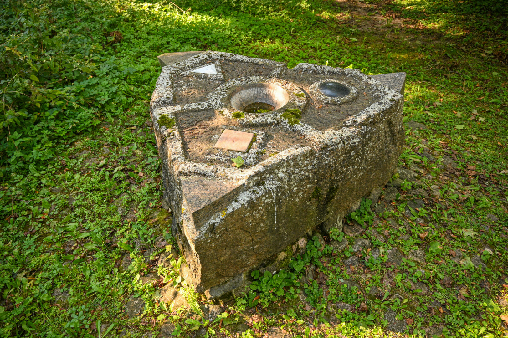 Parko lankytojo akis patraukia skulptūra, bylojanti, kad gyvenimas pastatytas ant trijų taškų.