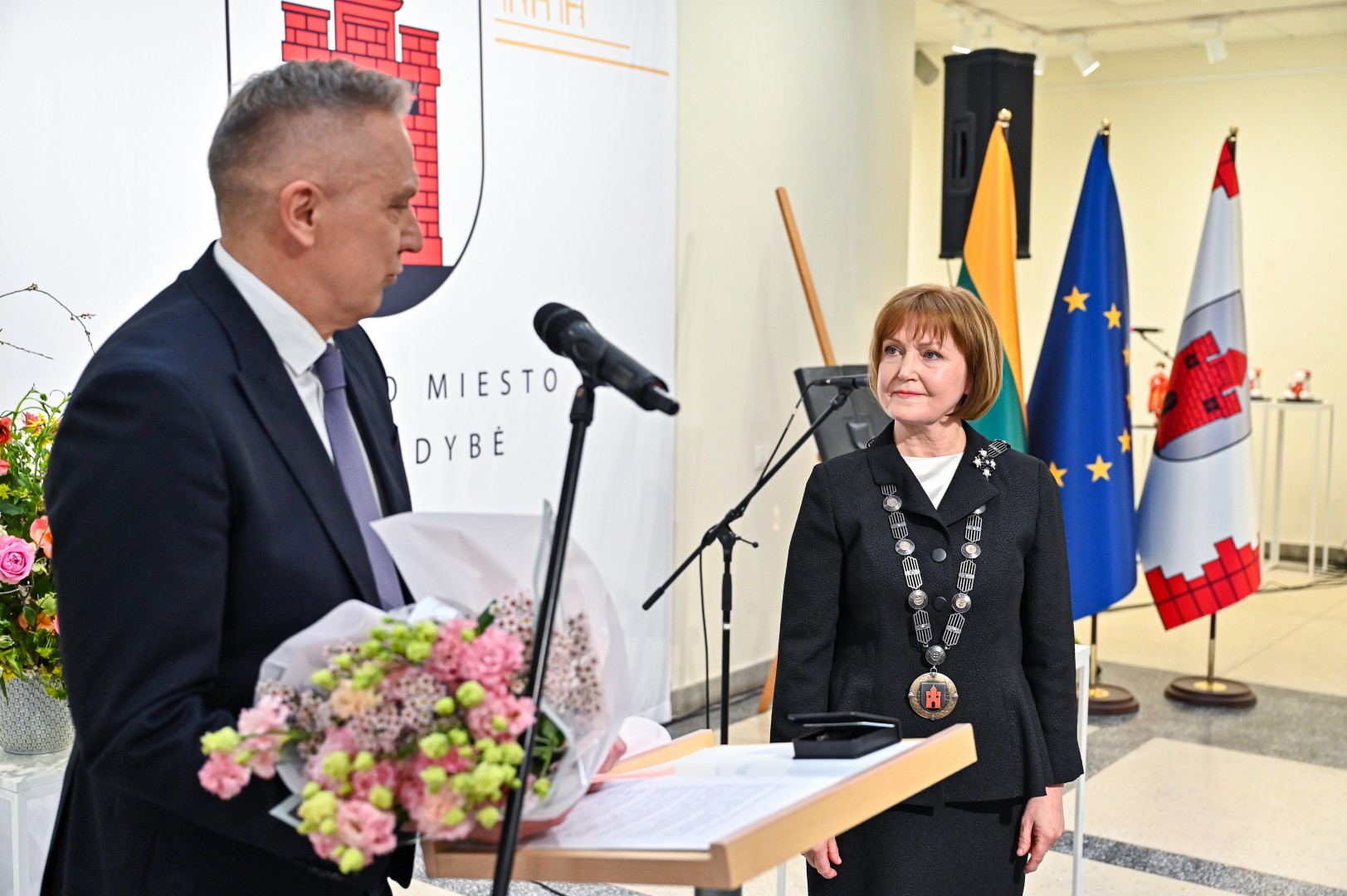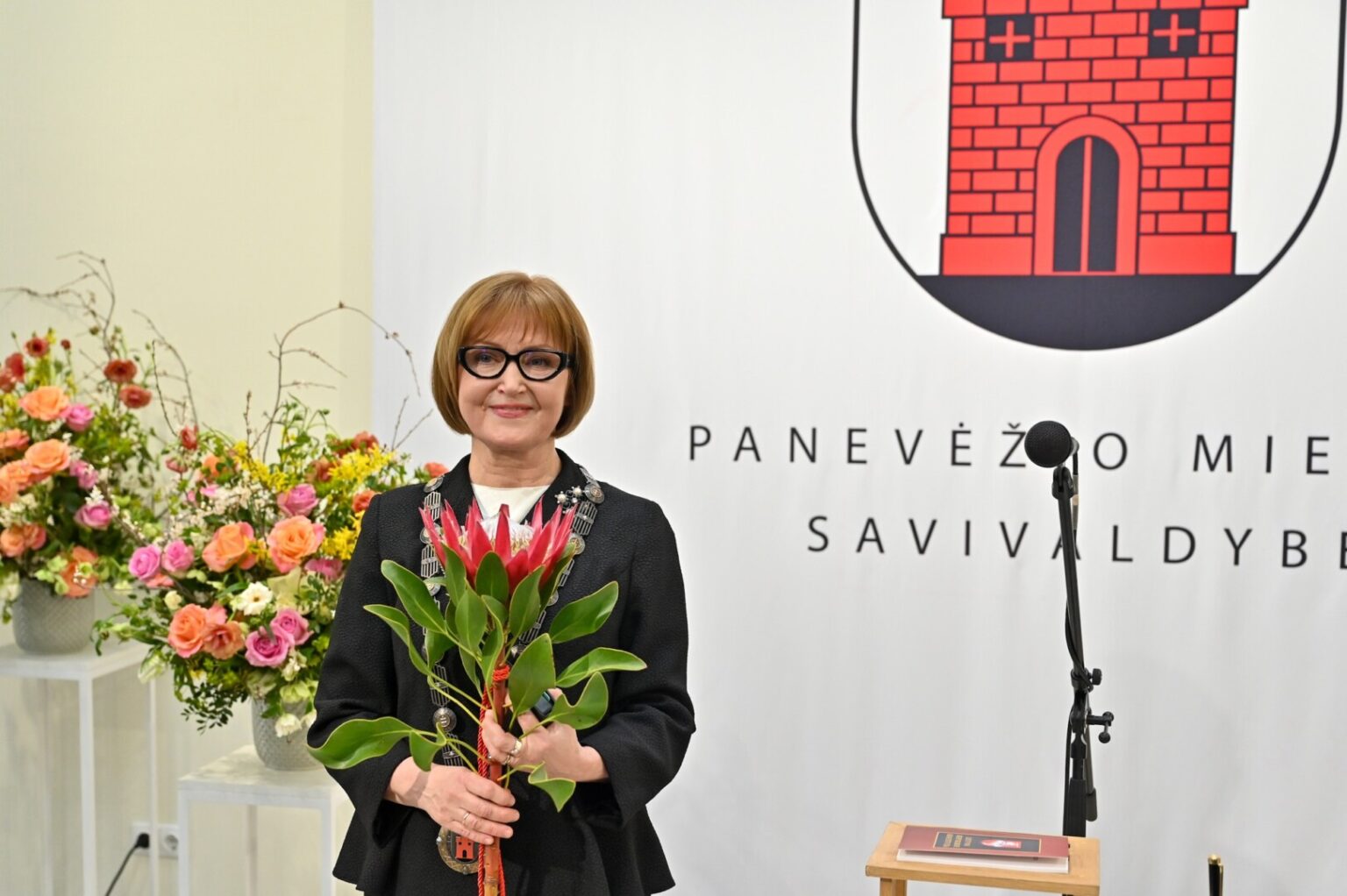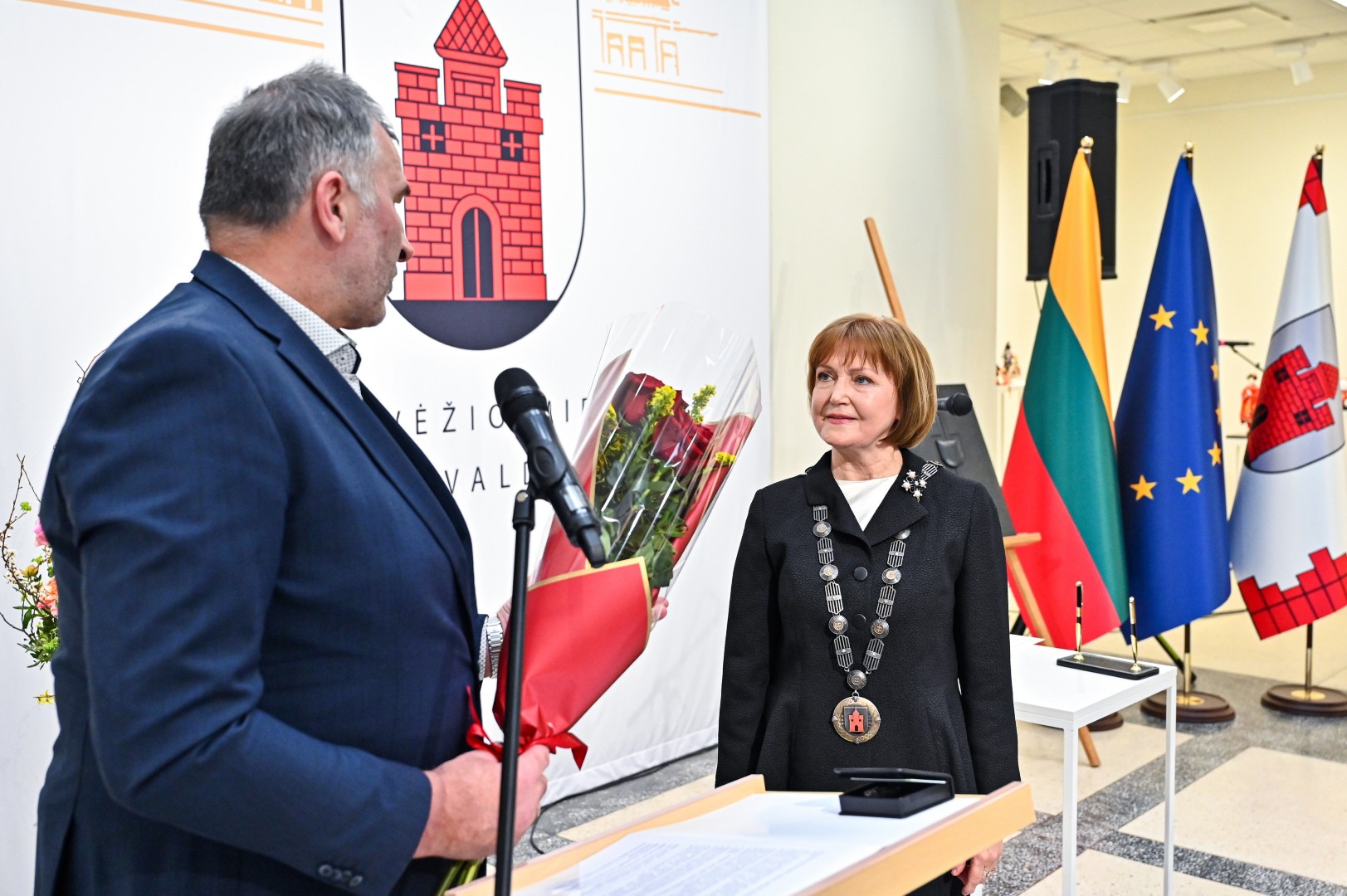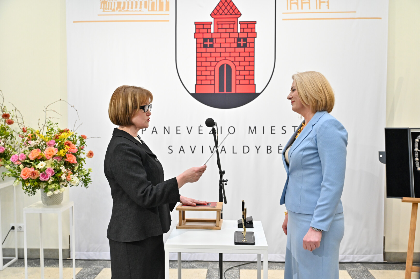 Mero regalijas jai įteikė Panevėžio rinkimų komisijos pirmininkė Zita Stripeikienė.
