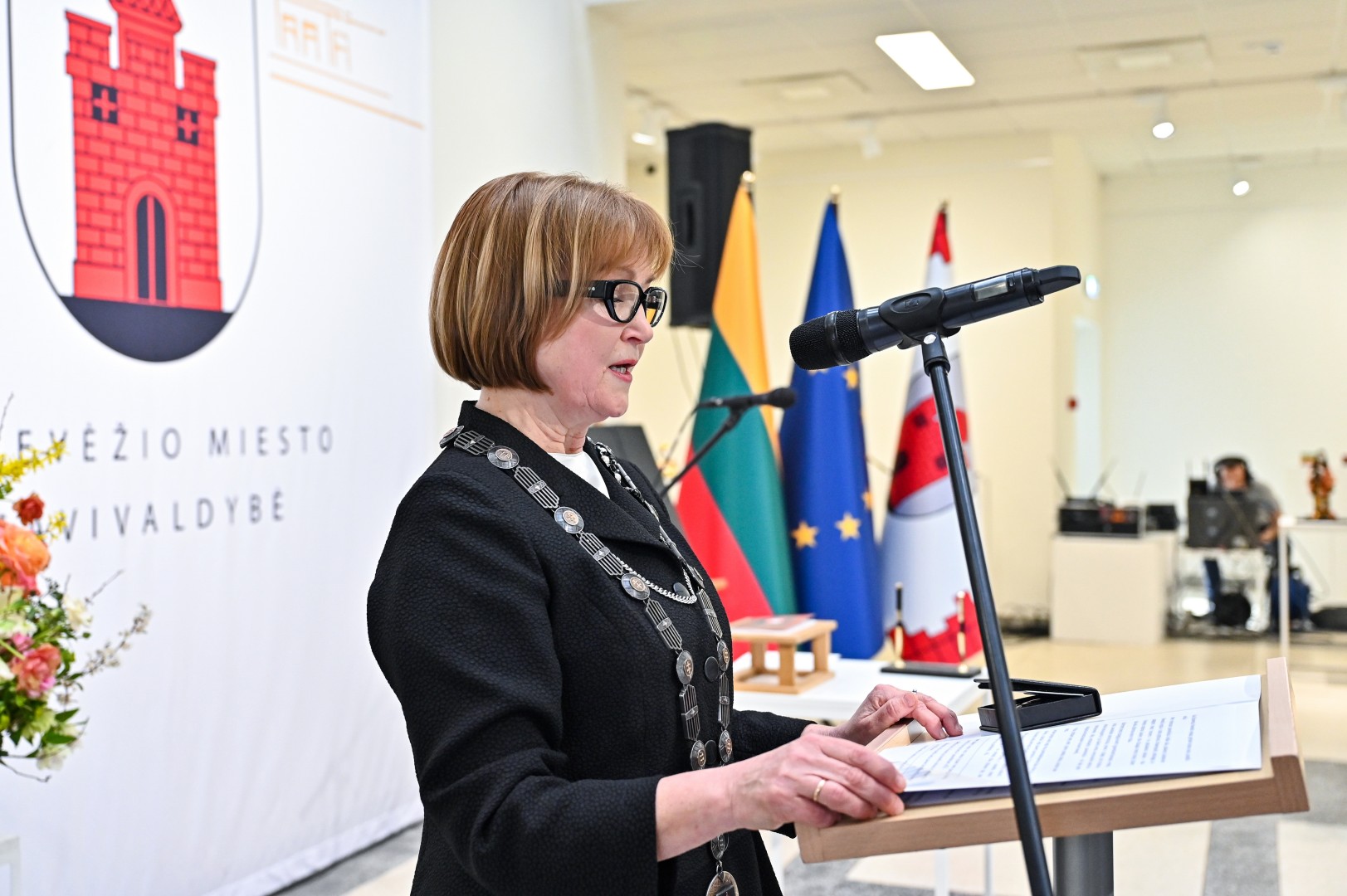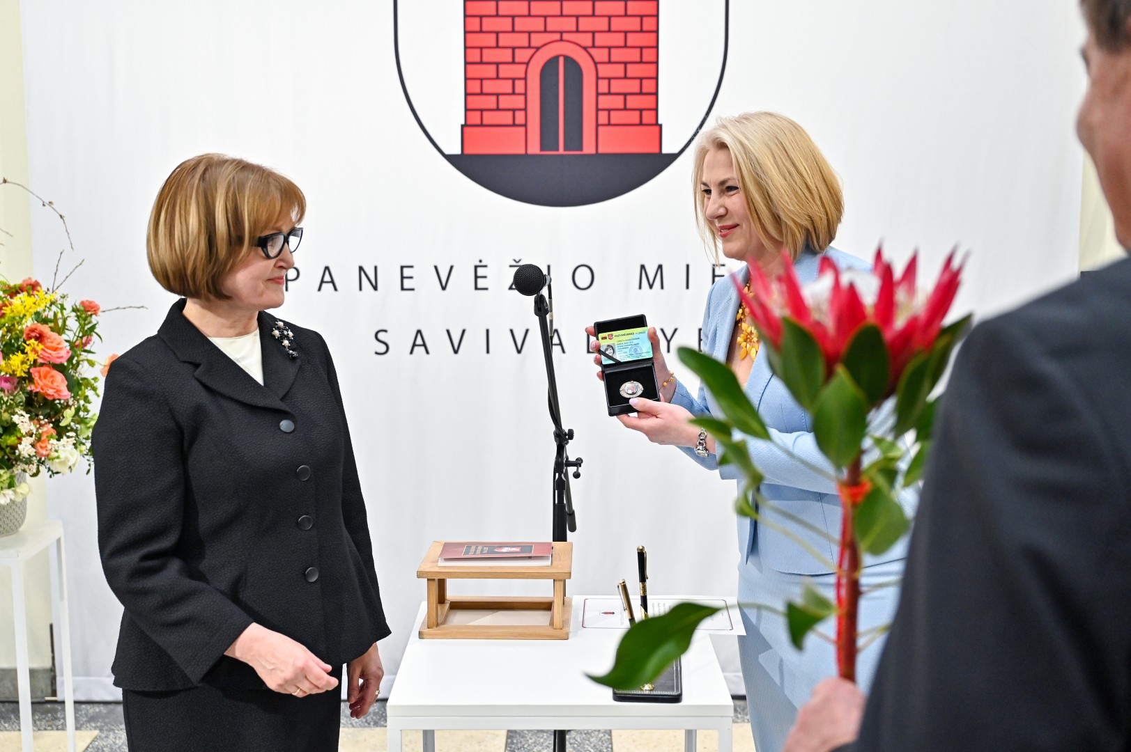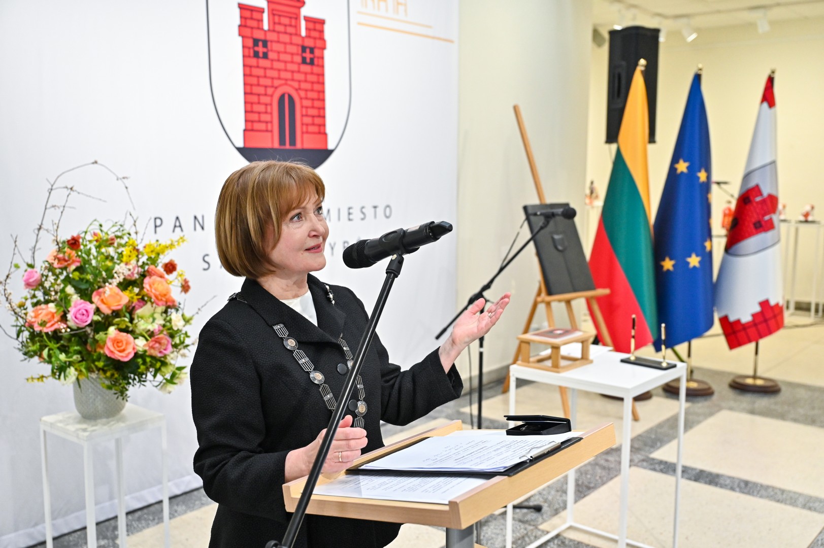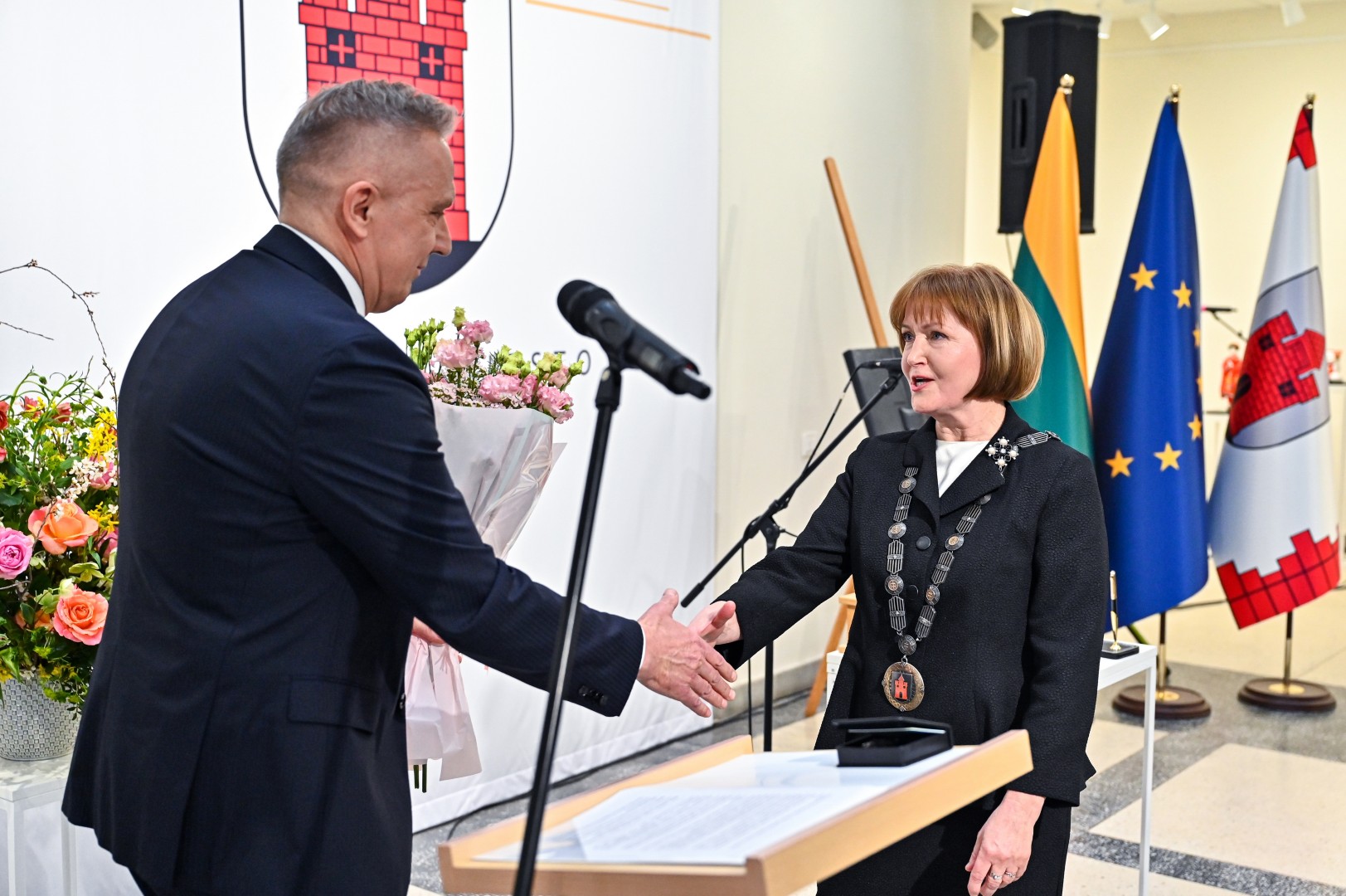 Mero regalijas jai įteikė Panevėžio rinkimų komisijos pirmininkė Zita Stripeikienė.