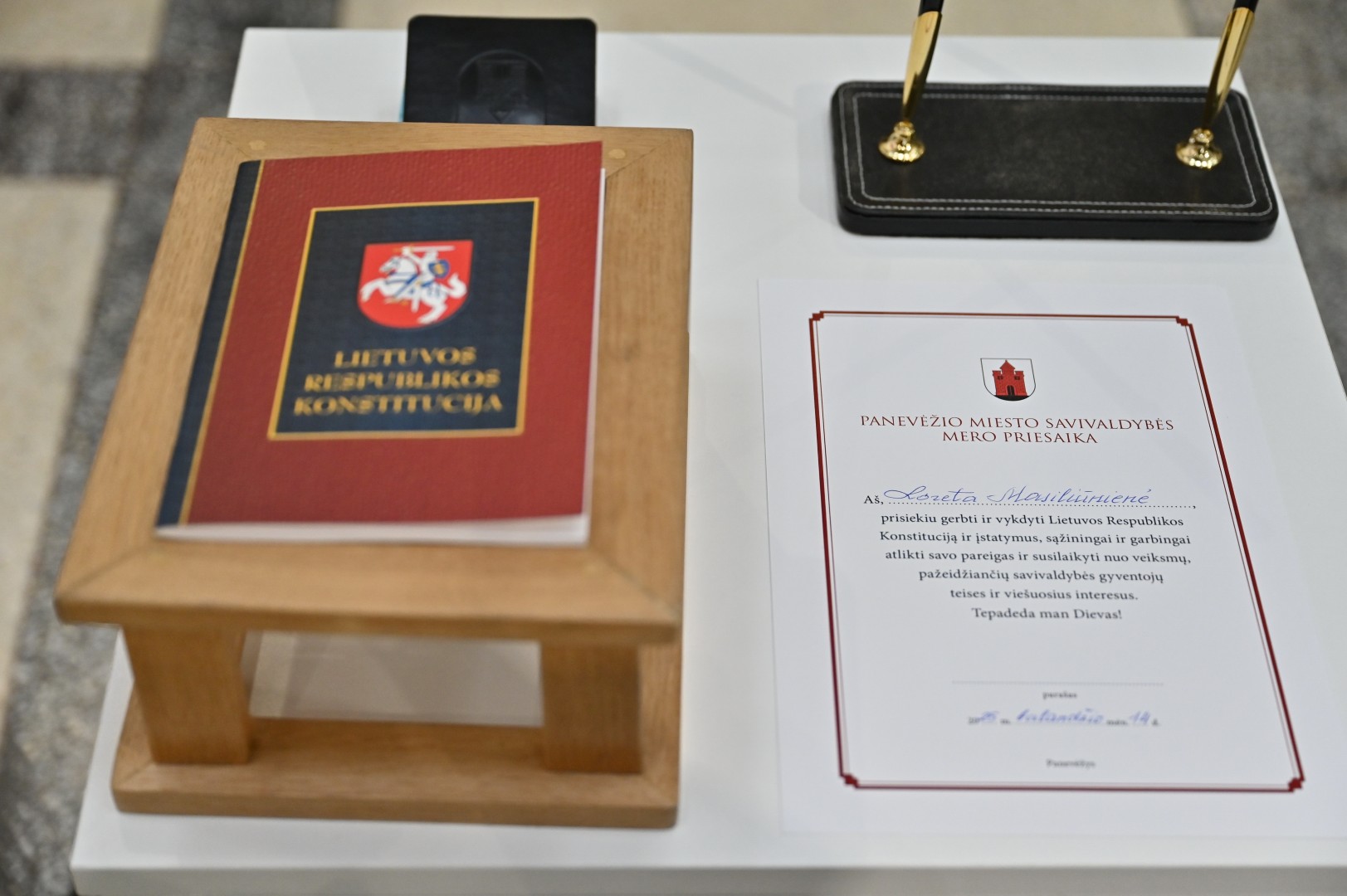 Susirinkusiesiems atsistojus, L. Masiliūnienė, padėjusi ranką ant Konstitucijos, prisiekė gerbti ir vykdyti Konstituciją ir įstatymus, sąžiningai ir garbingai atlikti savo pareigas, susilaikyti nuo veiksmų, pažeidžiančių savivaldybės gyventojų teises ir viešuosius interesus.