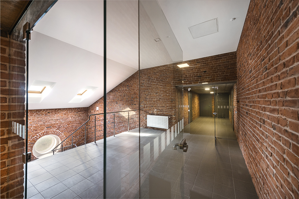 Vadovaujantis minėtomis nuostatomis, išlaikyta esminė pastato dalis – mūrinės išorinės sienos, o, atsižvelgiant į nekilnojamojo kultūros paveldo reikalavimus, stogas uždengtas falcais jungiama skarda. „Kontrasto principu panaudotos modernios stiklinės konstrukcijos taip pat buvo pasirinktos tam, kad neužgožtų unikalios, autentiškos architektūros“, – paaiškina E. Žurkus. Išlaikytas ir vidinių erdvių – laiptinių, koridorių – mastelis bei atkurtas jų medžiagiškumas.