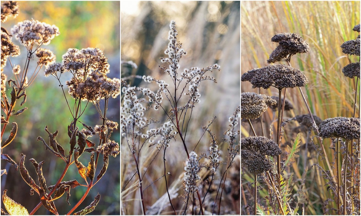 Jeigu nerimaujate, kad palikę pilną gėlyną „džiūvėsių“ būsite priversti kelis mėnesius žiūrėti į krūvą rudų sausuolių, labai klystate. Pastebėję augalus iš arčiau įsitikinsite, kiek daug net po mirties juose dar lieka atspalvių – taip, rudų, juodų irgi, tačiau ir raudonų, geltonų, žalių, net baltų.