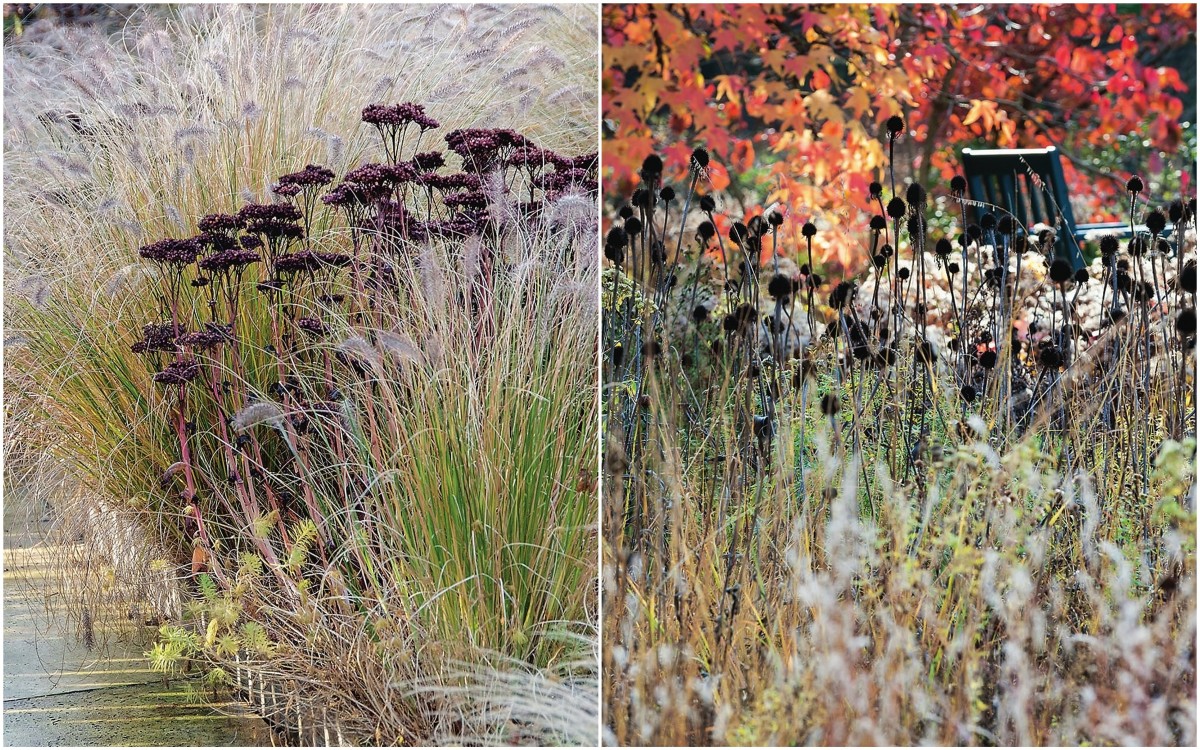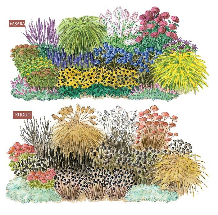 Tinkamai apsodintame gėlių darželyje viskas juk būtų taip pat. Ar kada nors pastebėjote, kokie efektingi būna rausvai rudi didžiųjų šilokų žiedynai? Arba beveik juodi ežiuolių ežiukai? Jų nenulaužo net sniegas – tik dar dailiau papuošia baltomis kepurėmis.