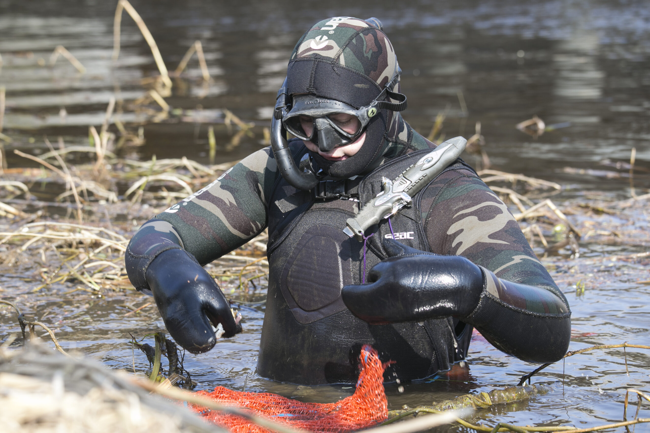 Panevėžiečiai darbavosi ir po vandeniu – narų entuziastų būrelis šiukšles rinko iš Nevėžio upės dugno. Šalia Smėlynės gatvės tilto nardęs Otonas atviravo, kad nardymui aplinkybės nelabai buvo palankios – dėl kylančio dumblo buvo itin prastas matomumas. Tačiau narai iškėlė nemažai „turto“: stiklinių butelių, skardinių, plastiko maišelių. Ankstesniais metais narams pavyko iš upės dugno ištraukti ir prekybos centro vežimėlių, kelių eismo ženklų, auksinių žiedų ir net pistoletą.