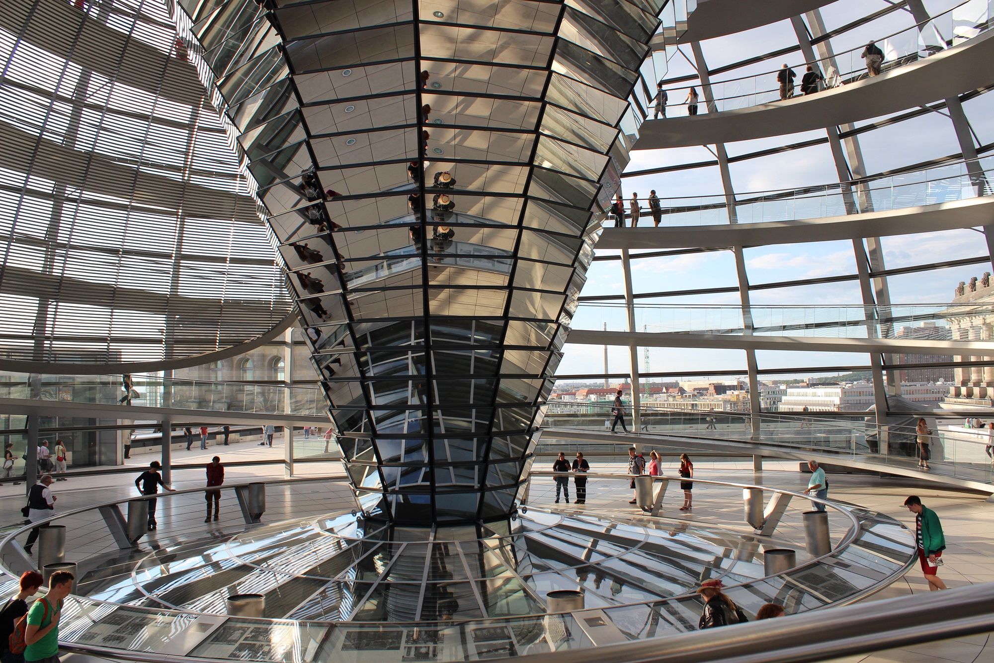 Miesto simbolis TV bokštas – visiems puikiai pažįstamas ir pirmu numeriu įrašytas į lankytinų vietų sąrašą. Tačiau, jei internetu iš anksto užsiregistruosite, ne blogesnę panoramą pamatysite visiškai nemokamai iš Reichstago kupolo (Platz der Republik 1). Be to, akies krašteliu pažvelgsite į didžiausio ES ūkio valdžios instituciją iš vidaus. Su savimi turėkite asmens dokumentą.