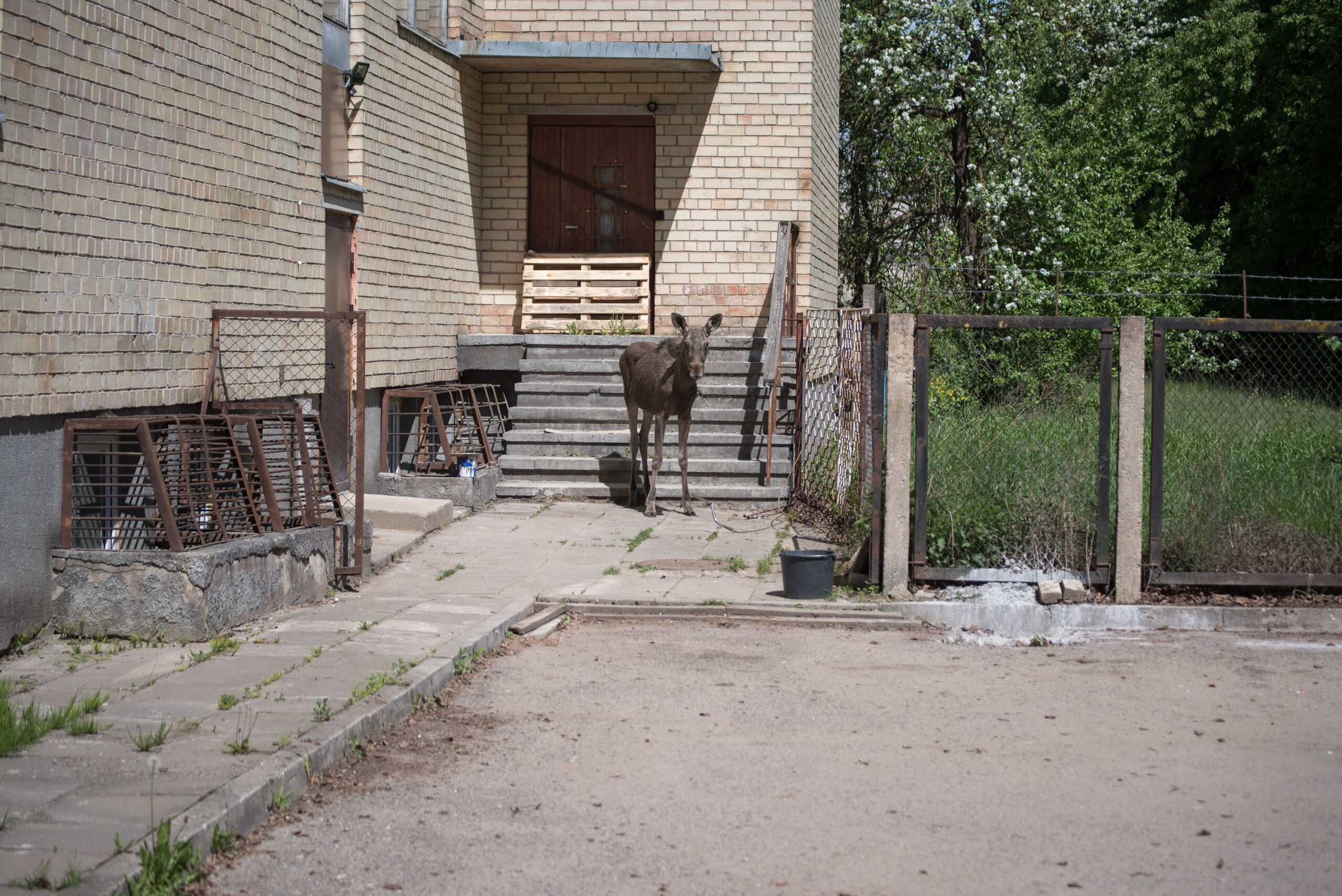 Šermukšnių gatvėje panevėžiečiai šiandien išvydo nekasdienį vaizdą – į 31-ojo pastato kiemą atklydo briedis.
