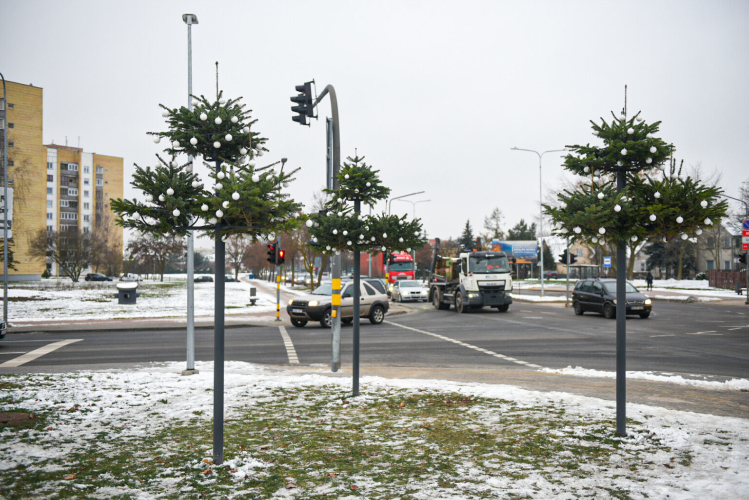 Laisvės aikštėje penktadienio vakarą nušvis svarbiausias žiemos švenčių simbolis eglė, dekoracijomis papuoštos gatvės, o ties miesto pagrindinėmis sankryžomis stovuose vasarą žydėjusias krentančias gėles pakeitė žaliaskarės, padabintos baltais burbulais.