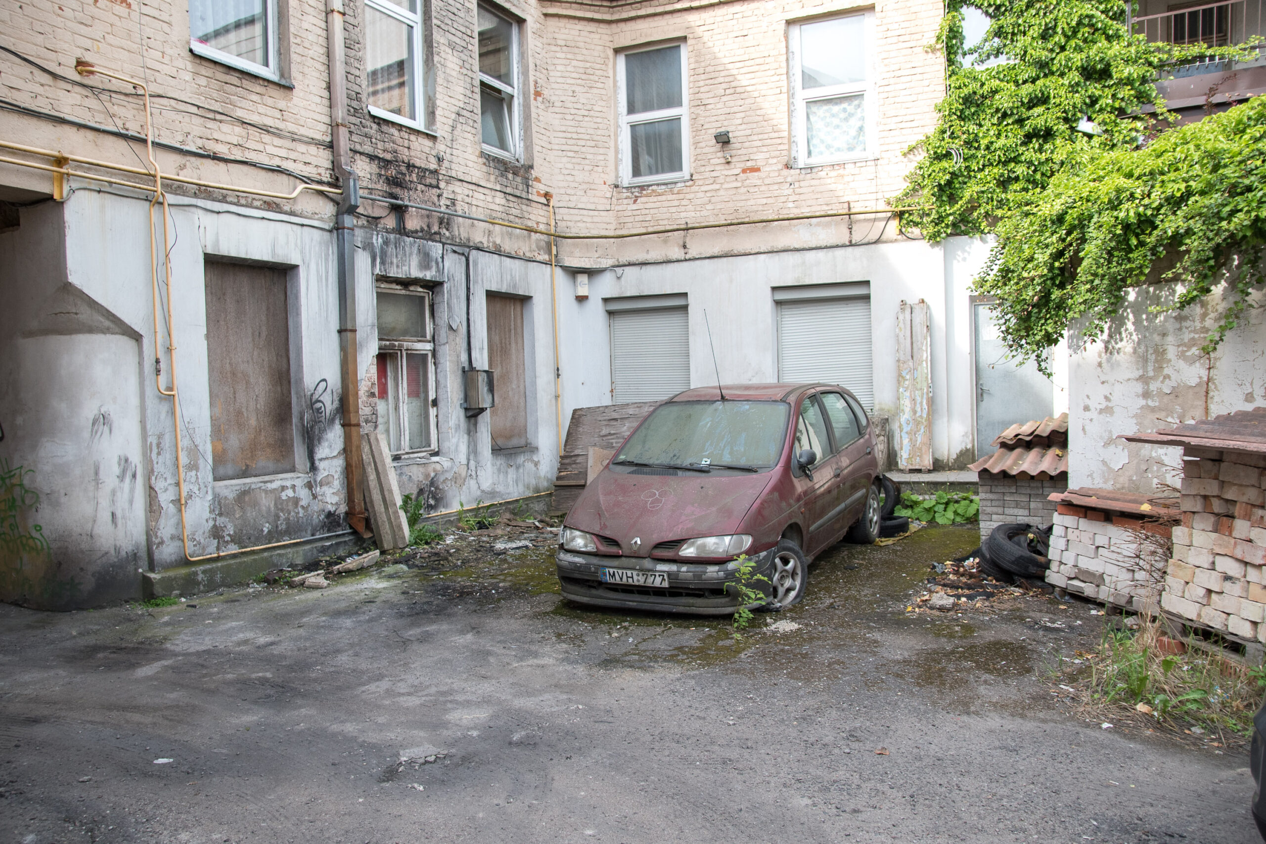Negražiai atrodo ir kitas V. Karpenkos turtas miesto centre. Iš Vasario 16-osios g. 5-ojo namo jau išsikraustė visi nuomininkai. Čia verslas negali įveikti jiems keliamų higienos reikalavimų.