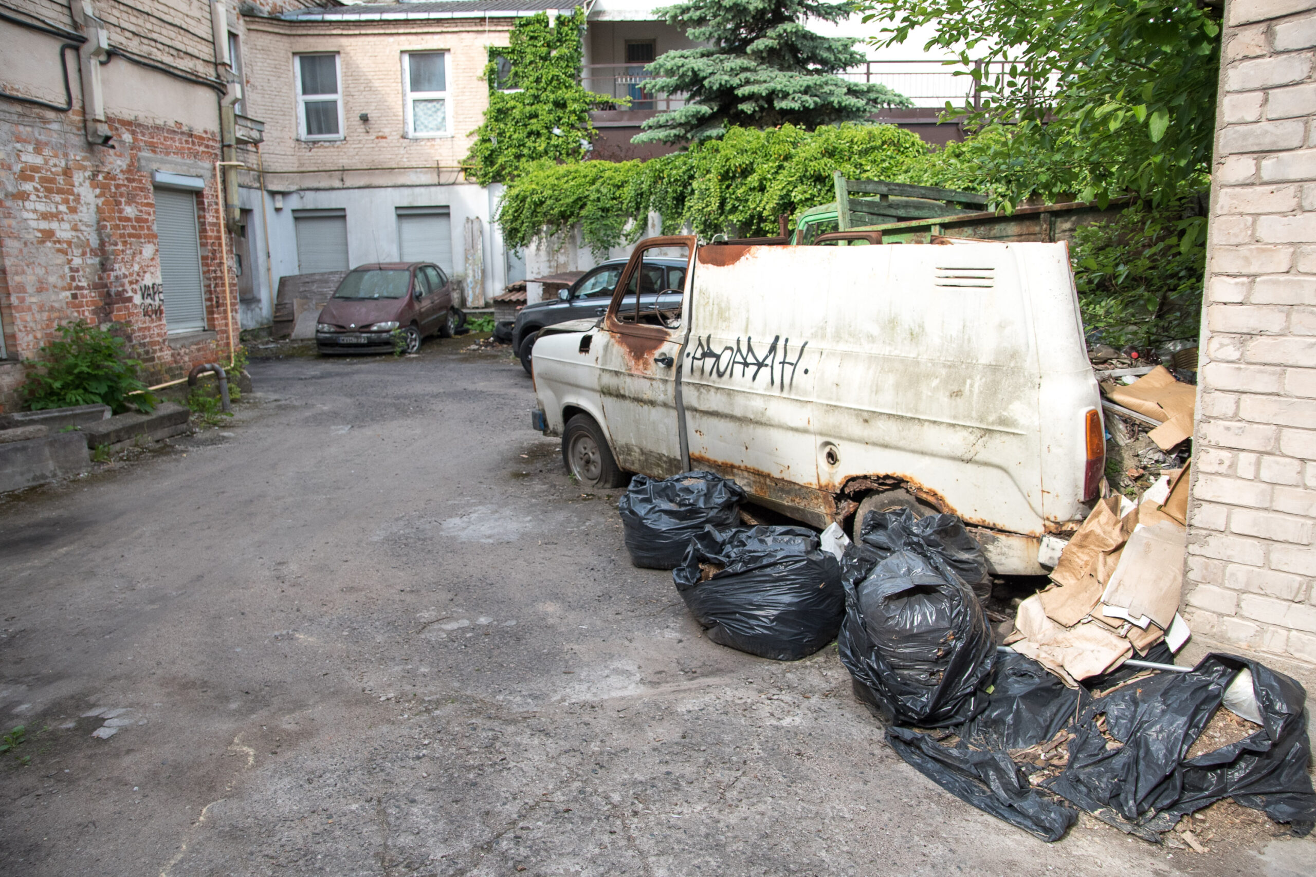 Senų verslininko automobilių iš kiemo nesugeba išginti Birutės gatvės gyventojai. Jiems iki šiol tenka stebėti, kaip surūdijusios transporto priemonės pavirto atliekų konteineriais. Numesti betono blokai slegia šalia namų nutiestus dujų vamzdynus.