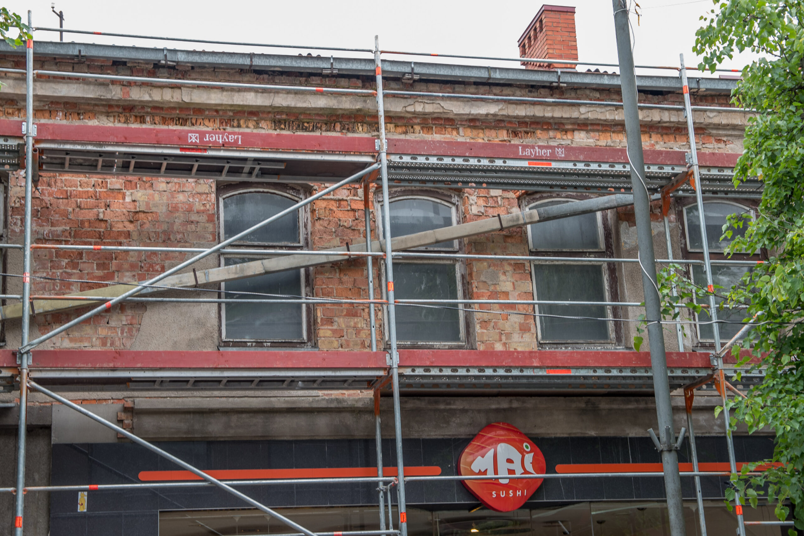 Panevėžio savivaldybė džiaugiasi, kad po ilgų derybų su šeimininku miesto centre, Vasario 16-osios gatvėje, pradėti 11-uoju numeriu pažymėto pastato stogo ir fasado remonto darbai.