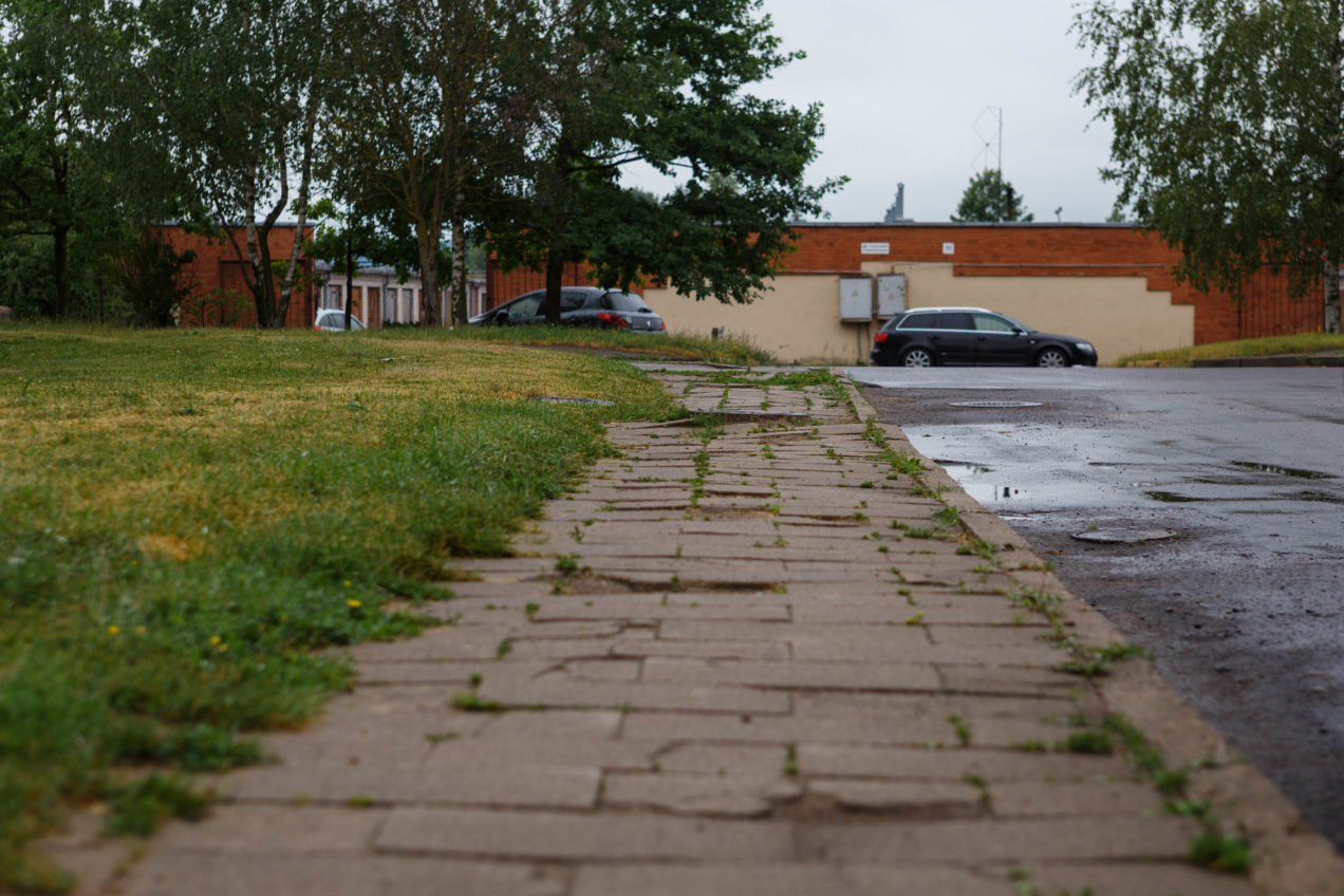 „Neseniai pjoviau žolę, ėjo viena kaimynė ir užsipuolė mane, kodėl nesutvarkomas šaligatvis. Esą ji dėl tokių sąlygų net koją buvo susilaužiusi, skilo kaulas“, – kalbėjo K. Grybė, „Sekundei“ rodydamas į dar nuo sovietmečiu pastatyto daugiabučio namo remonto nemačiusį šaligatvį.