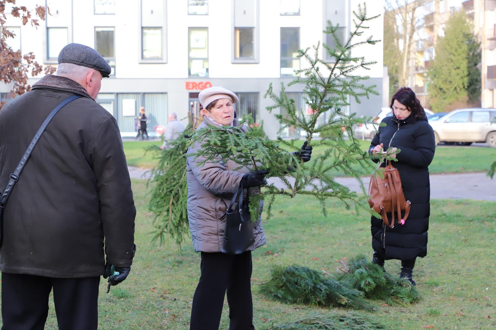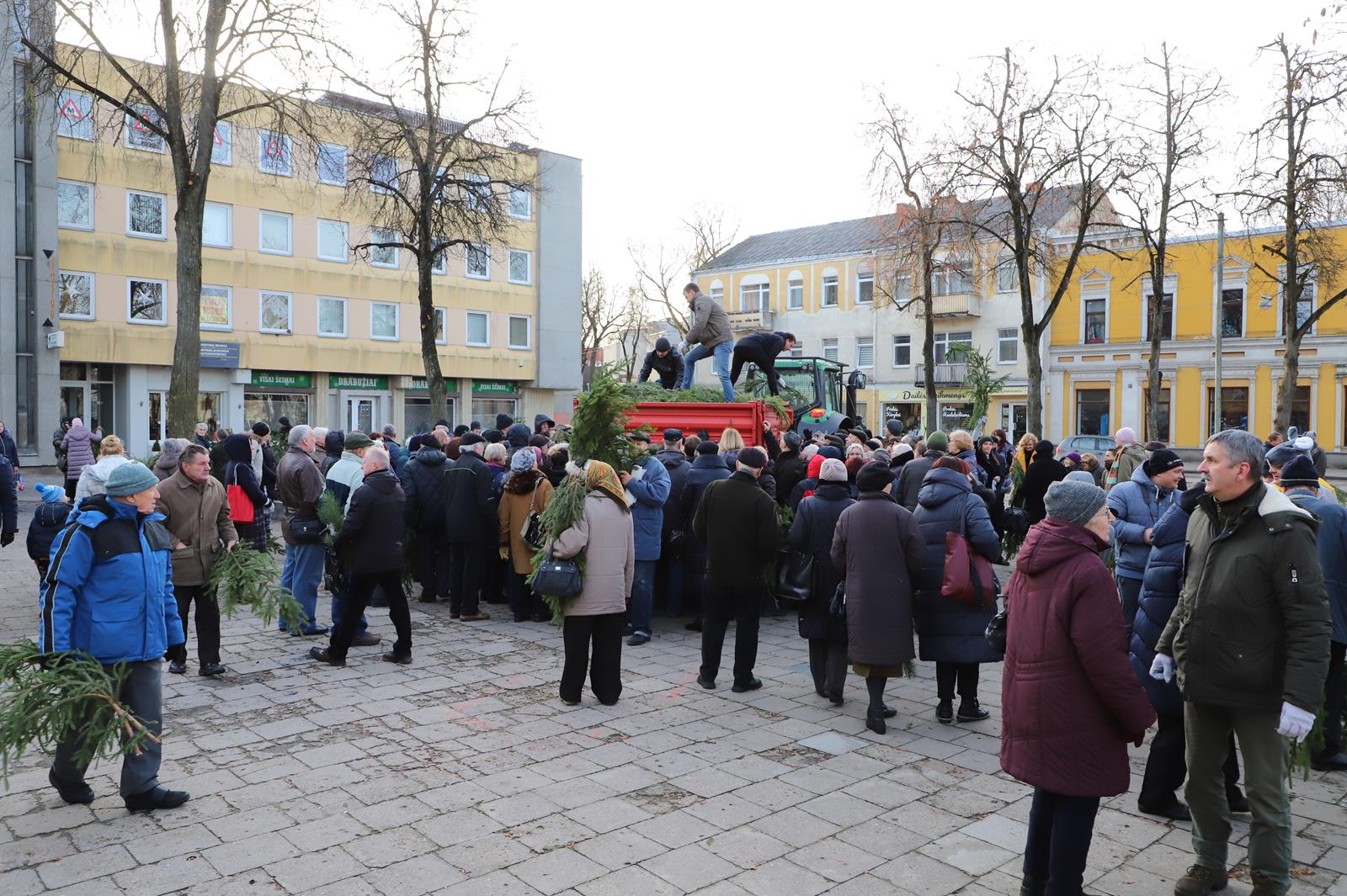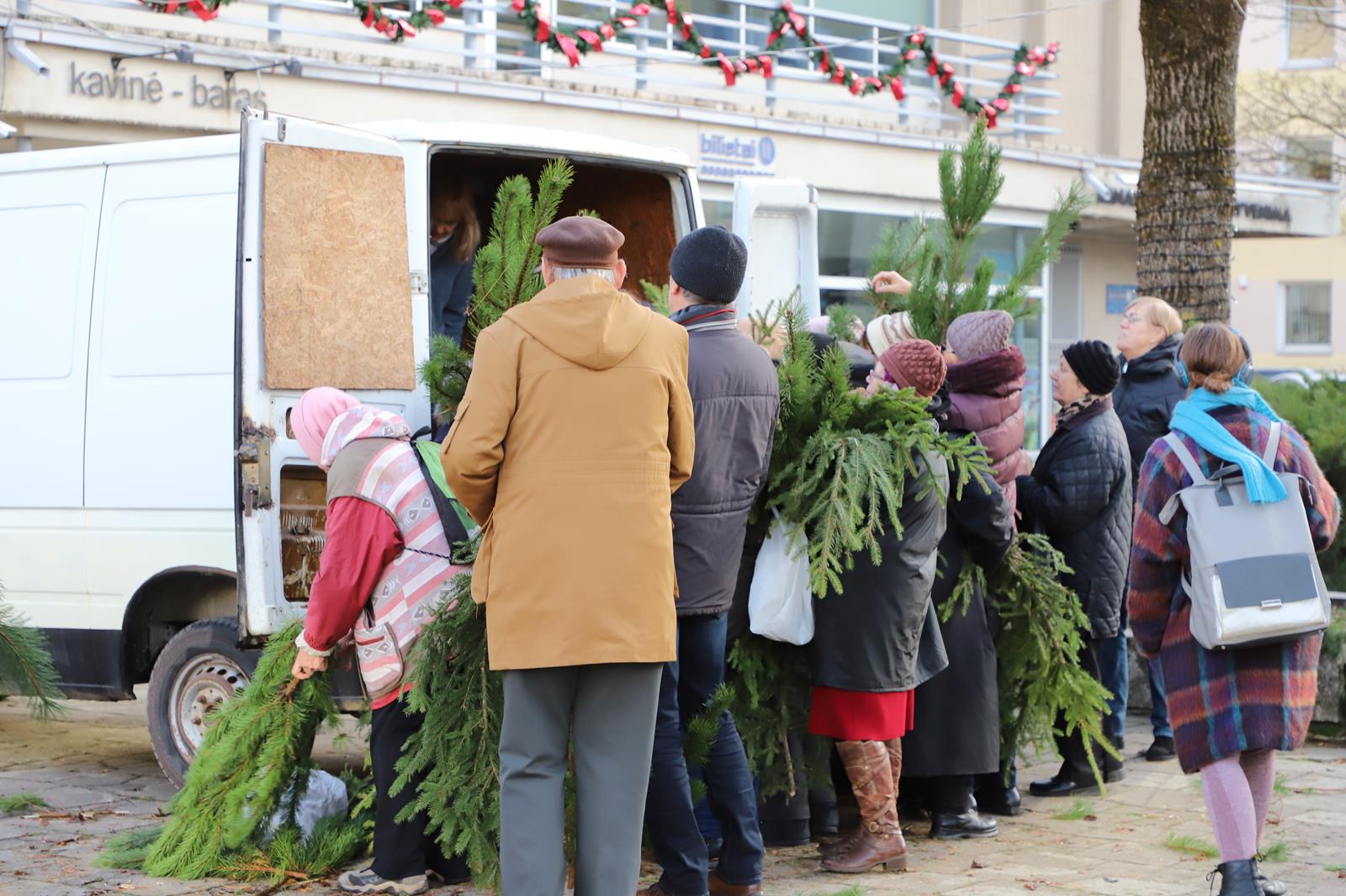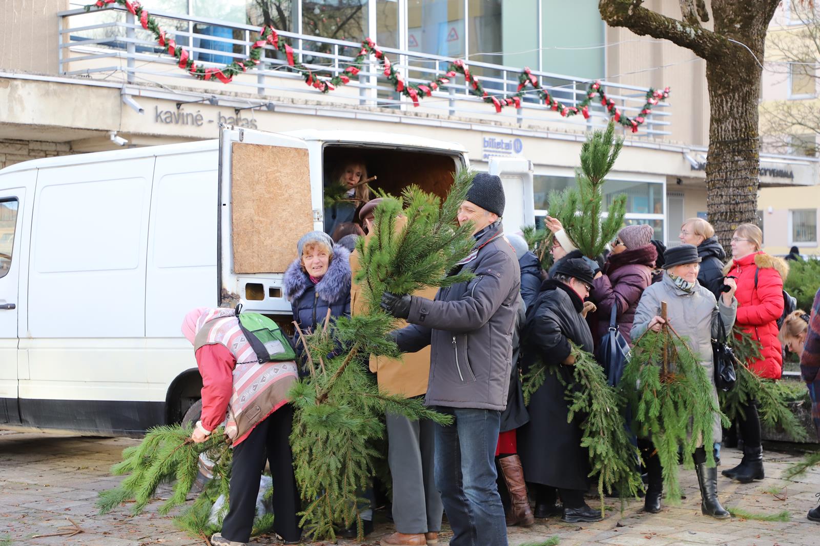 Vos spėjo sustoti Valstybinės miškų urėdijos Panevėžio regioninio padalinio traktorius, prie jo plūstelėjo žmonių banga. Nemažai atėjusiųjų tradiciškai skubėjo apsirūpinti ne po vieną šaką – kas kaimynams, draugams, artimiesiems, o kai kas neslėpė uždengsiantys dar ir gėles, treti žadėjo pinsiantys kalėdinius vainikus. Populiarūs buvo ir šiemet pirmą kartą dalijami pušų kankorėžiai. Juos vieni dėjosi į kišenes, kiti specialiai tam buvo net atsinešę maišelius.