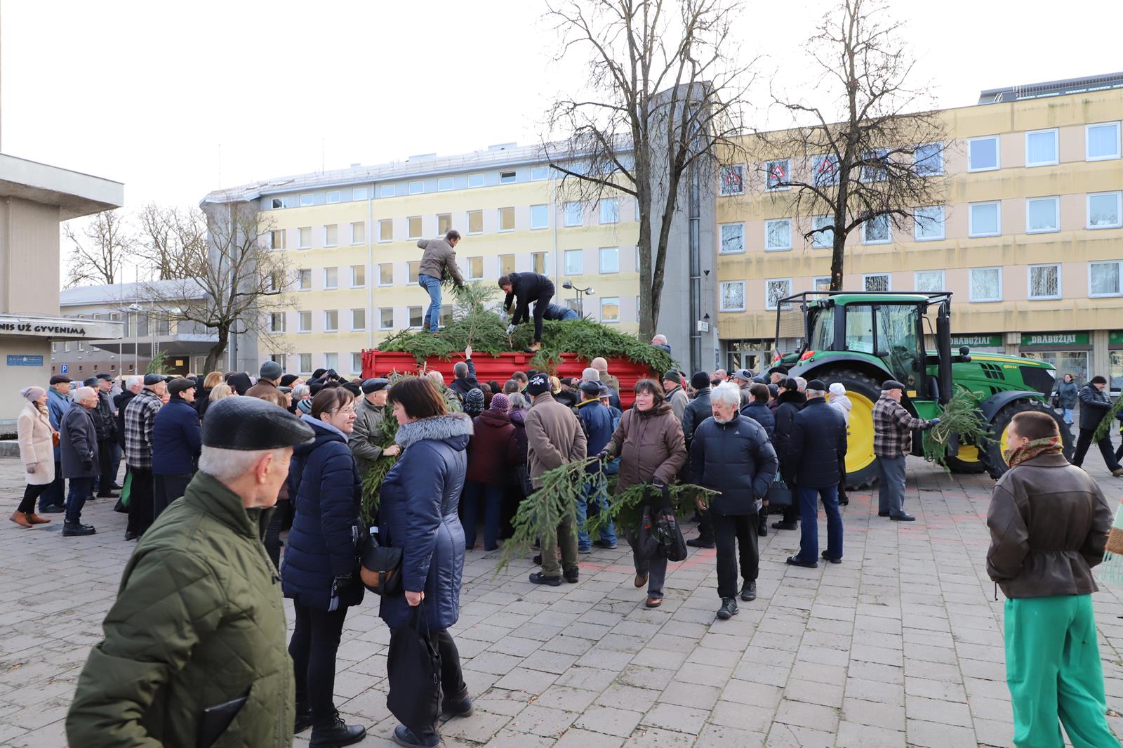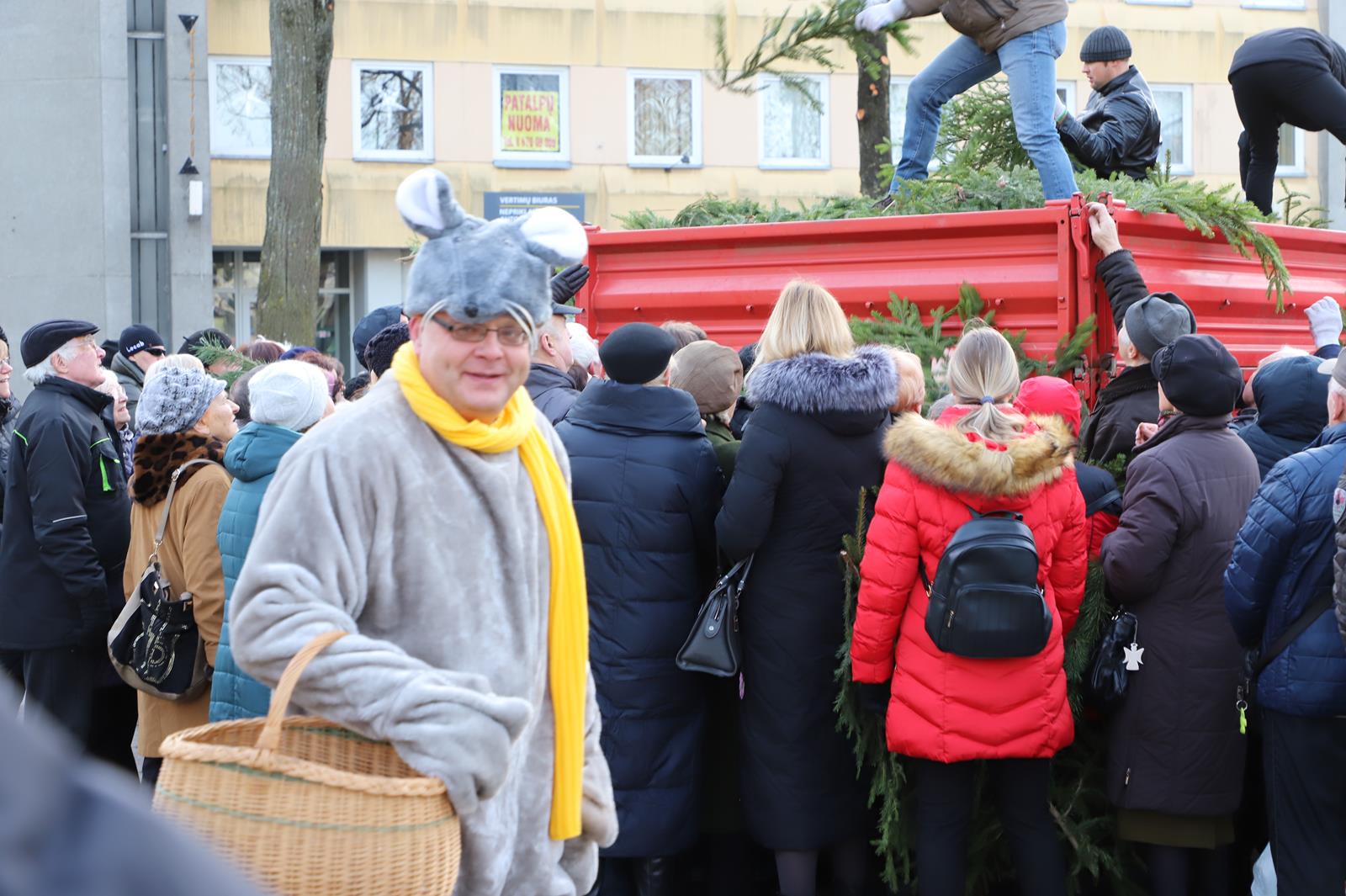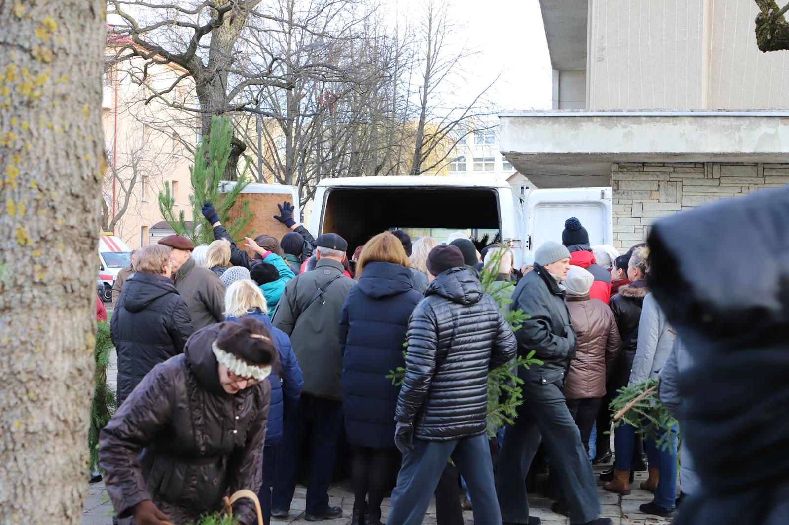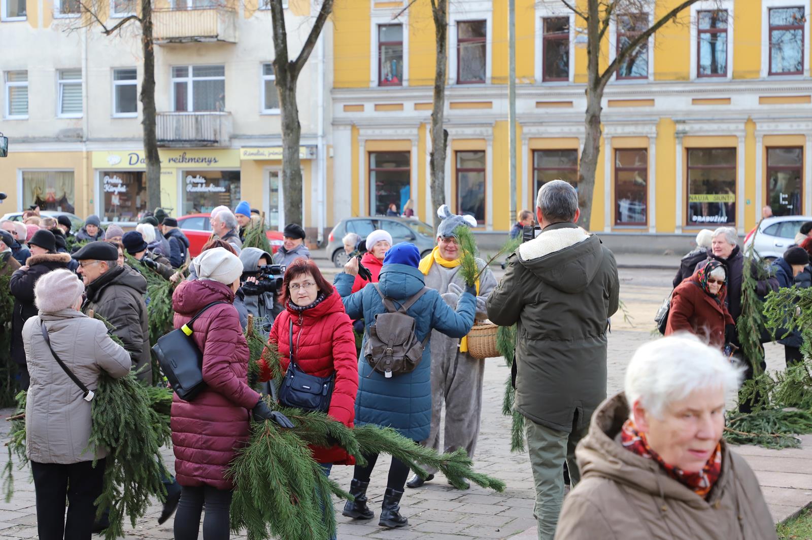 Vos spėjo sustoti Valstybinės miškų urėdijos Panevėžio regioninio padalinio traktorius, prie jo plūstelėjo žmonių banga. Nemažai atėjusiųjų tradiciškai skubėjo apsirūpinti ne po vieną šaką – kas kaimynams, draugams, artimiesiems, o kai kas neslėpė uždengsiantys dar ir gėles, treti žadėjo pinsiantys kalėdinius vainikus. Populiarūs buvo ir šiemet pirmą kartą dalijami pušų kankorėžiai. Juos vieni dėjosi į kišenes, kiti specialiai tam buvo net atsinešę maišelius.