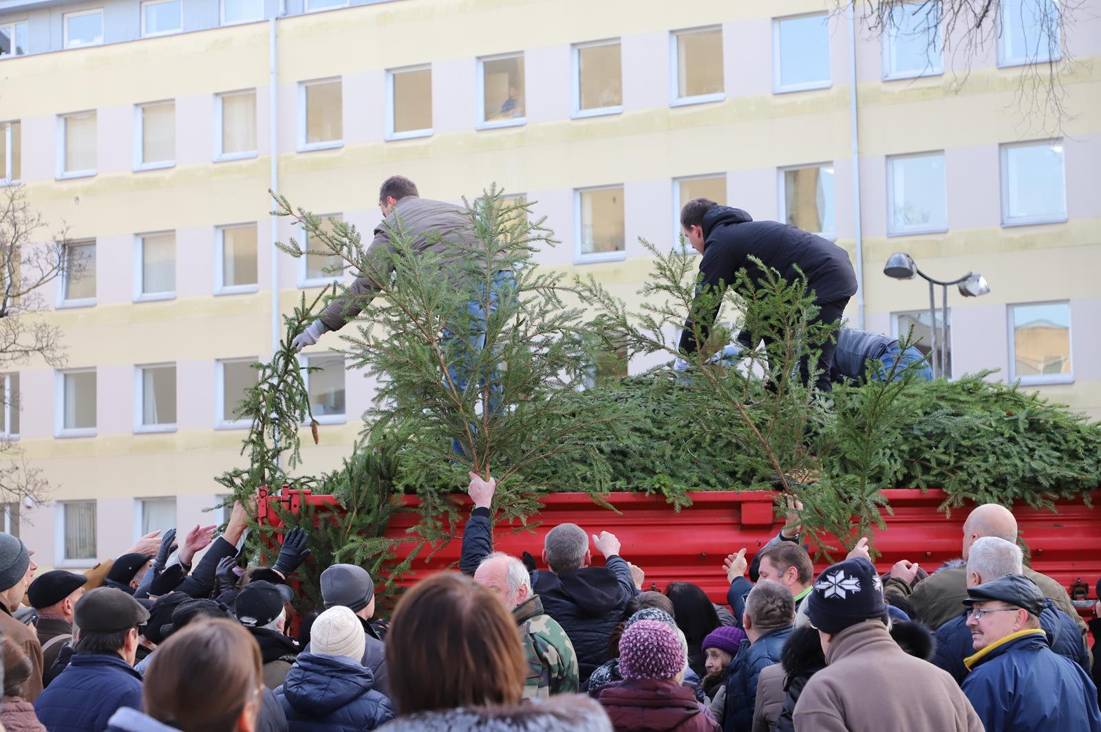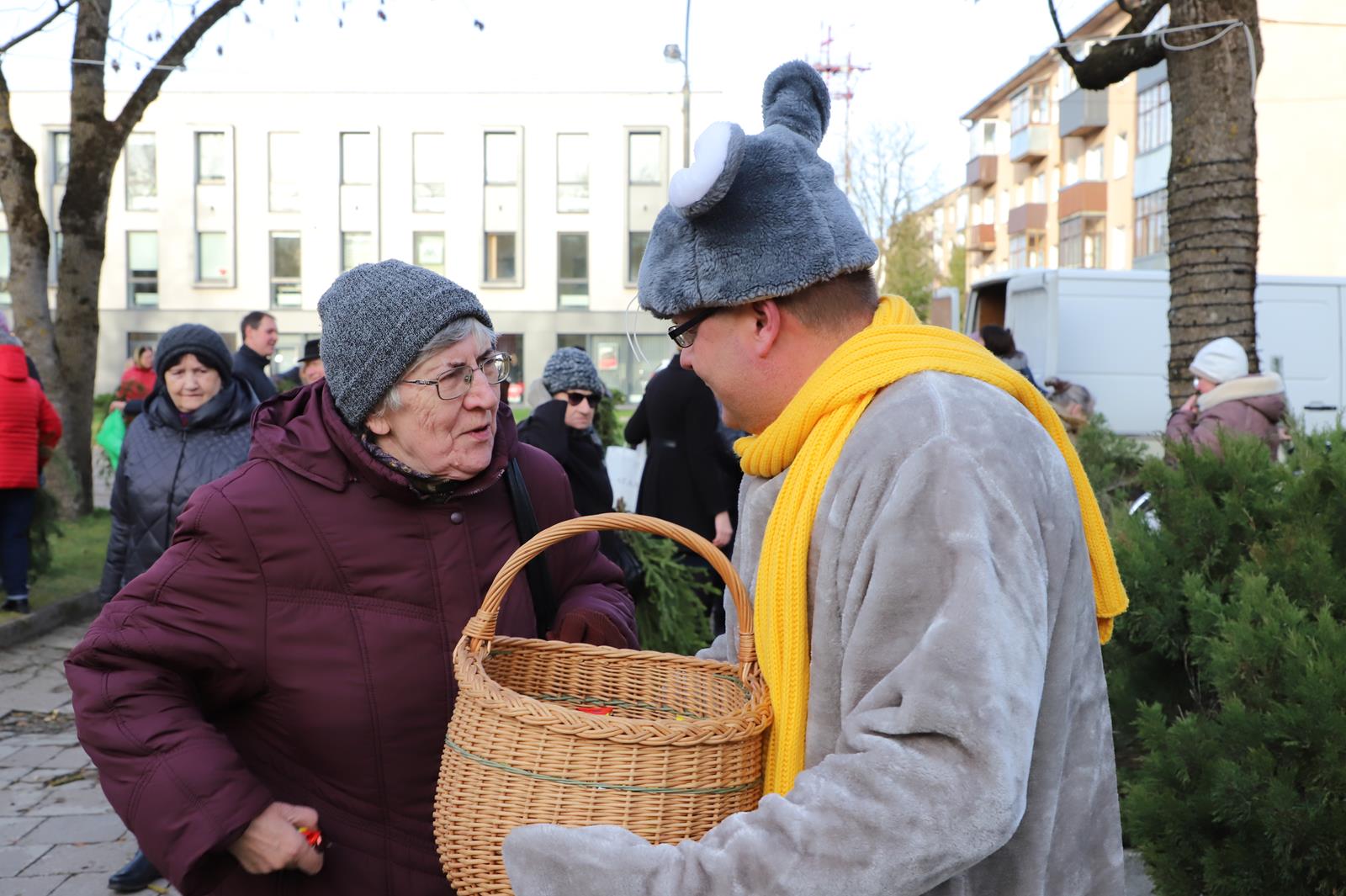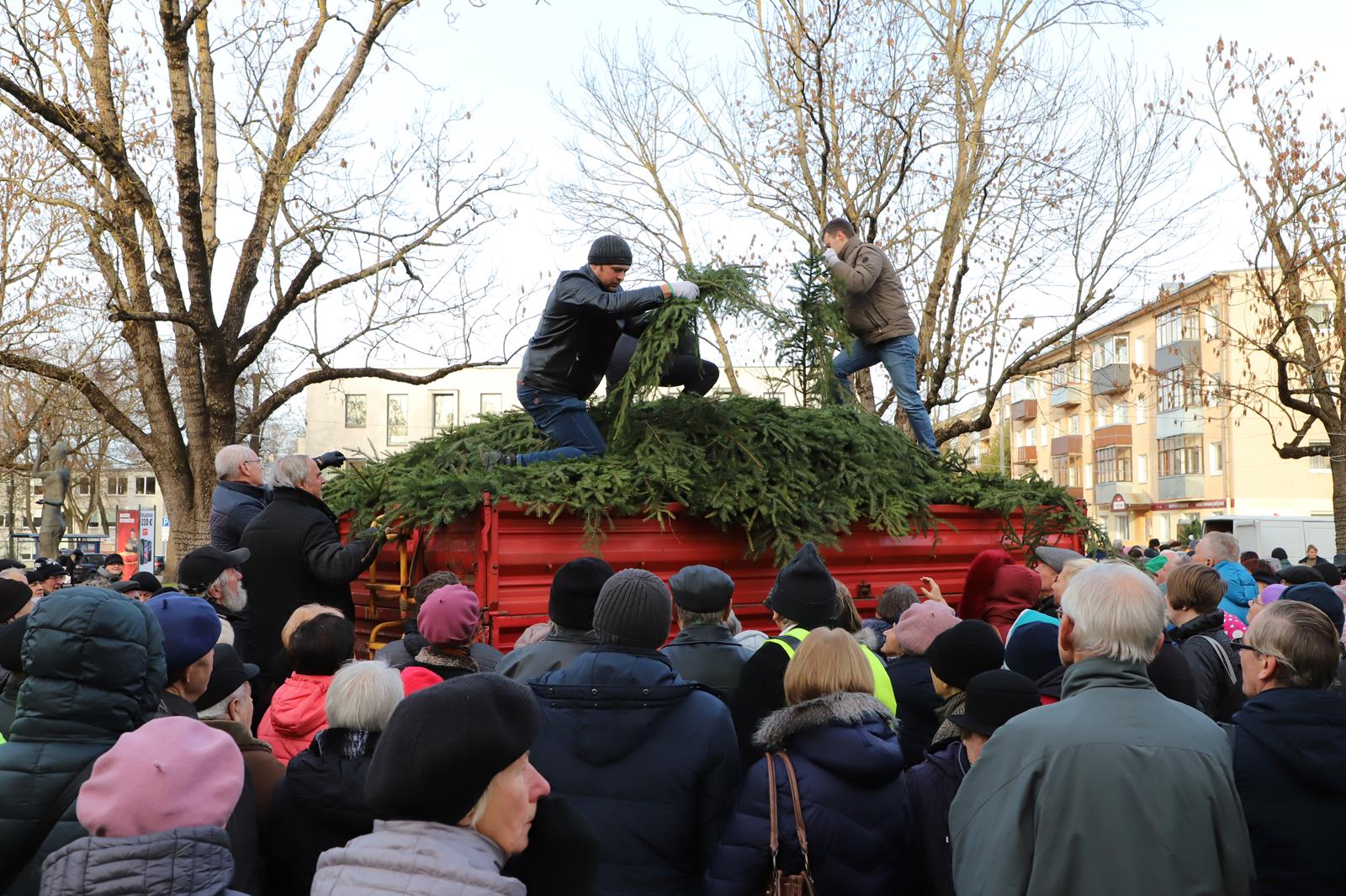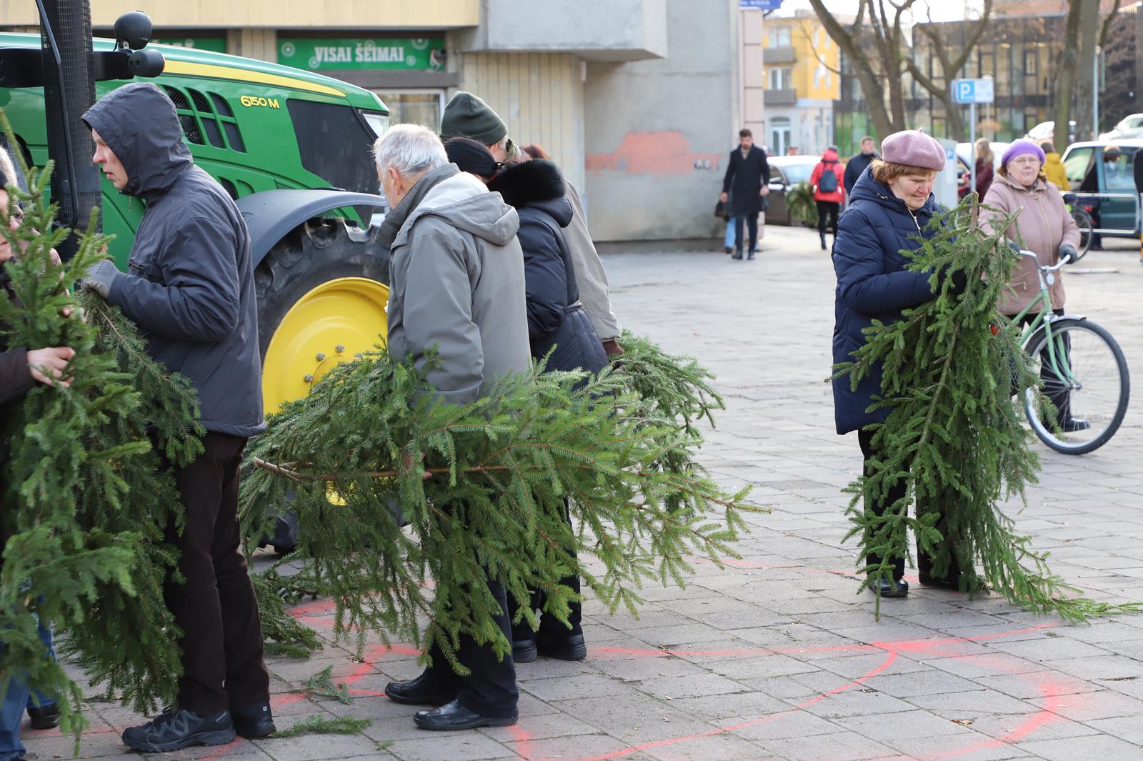 Vos spėjo sustoti Valstybinės miškų urėdijos Panevėžio regioninio padalinio traktorius, prie jo plūstelėjo žmonių banga. Nemažai atėjusiųjų tradiciškai skubėjo apsirūpinti ne po vieną šaką – kas kaimynams, draugams, artimiesiems, o kai kas neslėpė uždengsiantys dar ir gėles, treti žadėjo pinsiantys kalėdinius vainikus. Populiarūs buvo ir šiemet pirmą kartą dalijami pušų kankorėžiai. Juos vieni dėjosi į kišenes, kiti specialiai tam buvo net atsinešę maišelius.