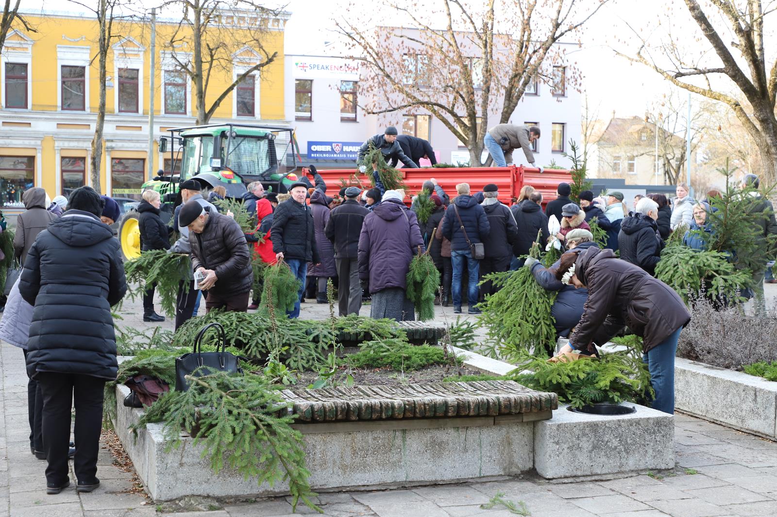 Panevėžio centre pakvipo tikromis Kalėdomis. Į aikštę prie kino centro „Garsas“ miškininkų atvežtų ir nemokamai dalintų eglių bei pušų šakų pasiimti susirinko minia.