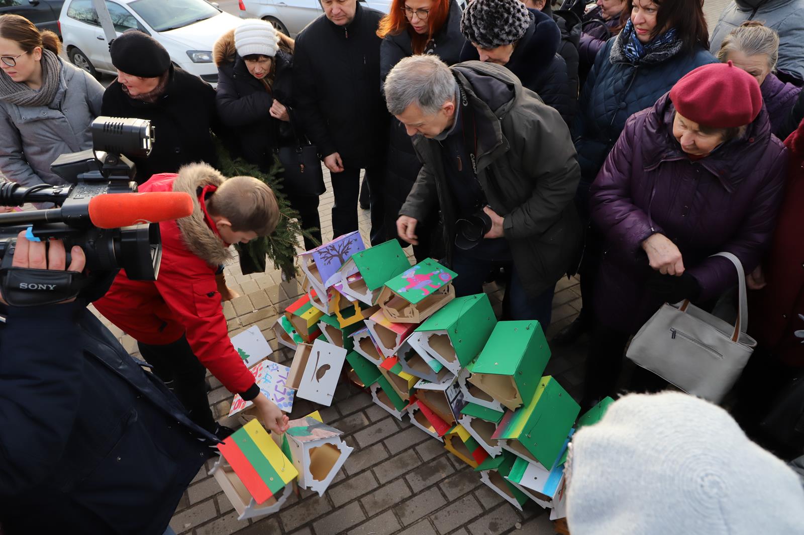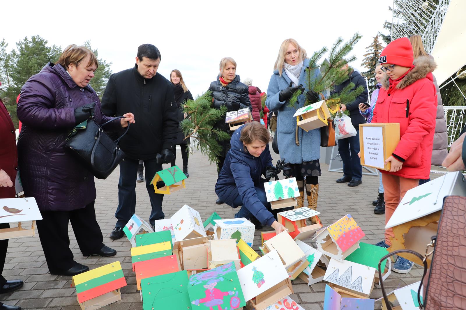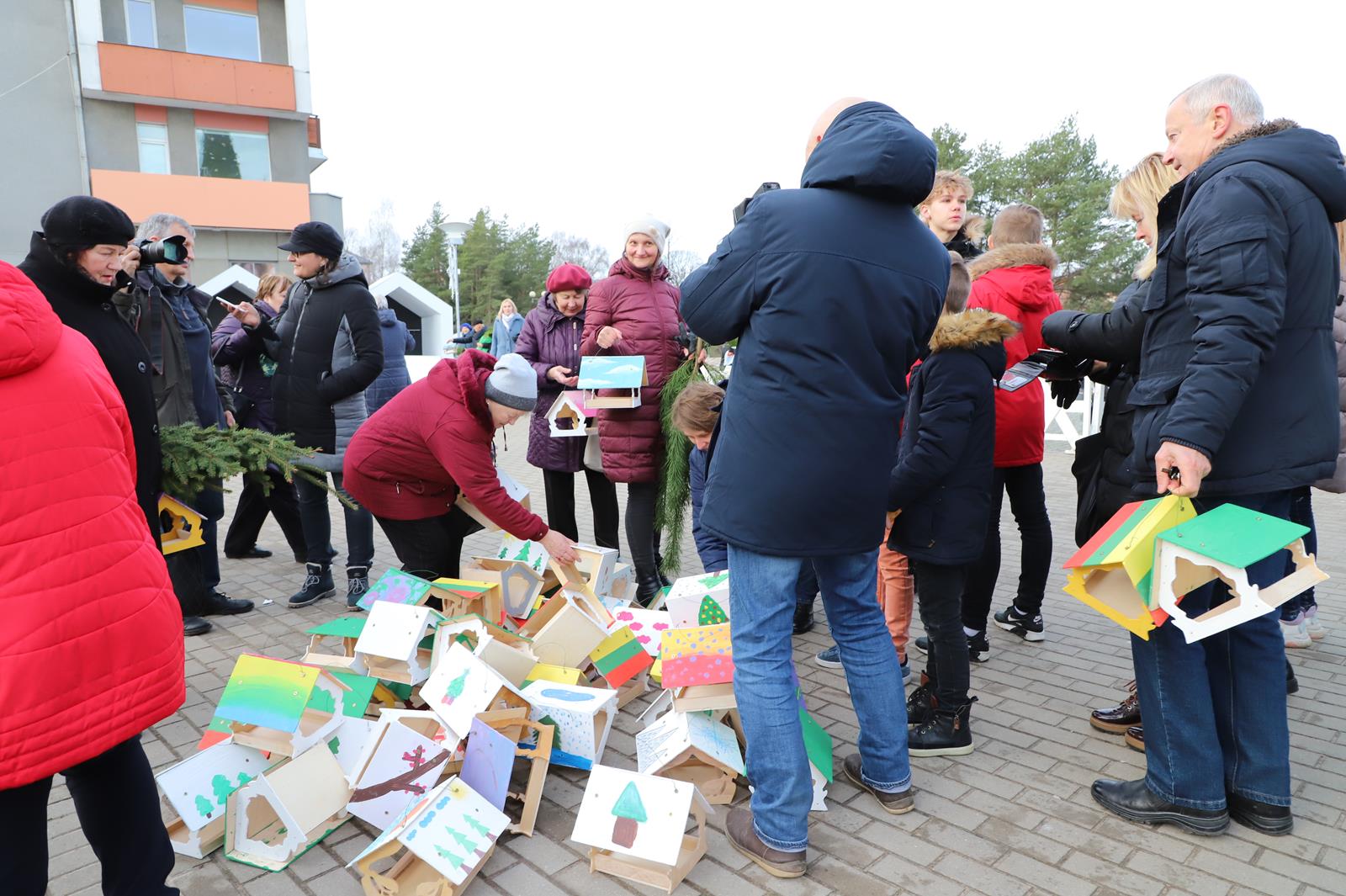 Nešini eglės ar pušies šakomis panevėžiečiai skubėjo prie kalėdinės miesto eglės, kur „Ąžuolo“ progimnazijos jaunojo miško bičiulio būrelio „Miško meistreliai“ nariai kartu su technologijų mokytoju Romu Kupčinsku surengė taip pat tradicine tapusią lesyklėlių dovanojimo akciją. Vos spėjus iškrauti lesyklas ir šiaip ne taip per žmonių būrį vaikams prie jų nusifotografuoti prie jų, dailios, mokinių pagamintos lesyklos buvo iš karto išgraibstytos. Vaikai panevėžiečiams sukalė 100 lesyklų. Vienos jų išpieštos paukščiukais, eglutėmis, kitais motyvais, kitos trispalvės ar kitaip išdažytos. Dar 50 lesyklėlių sausio 10-ąją žadama vežti į Vilnių.