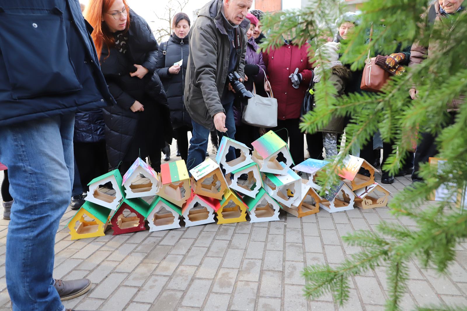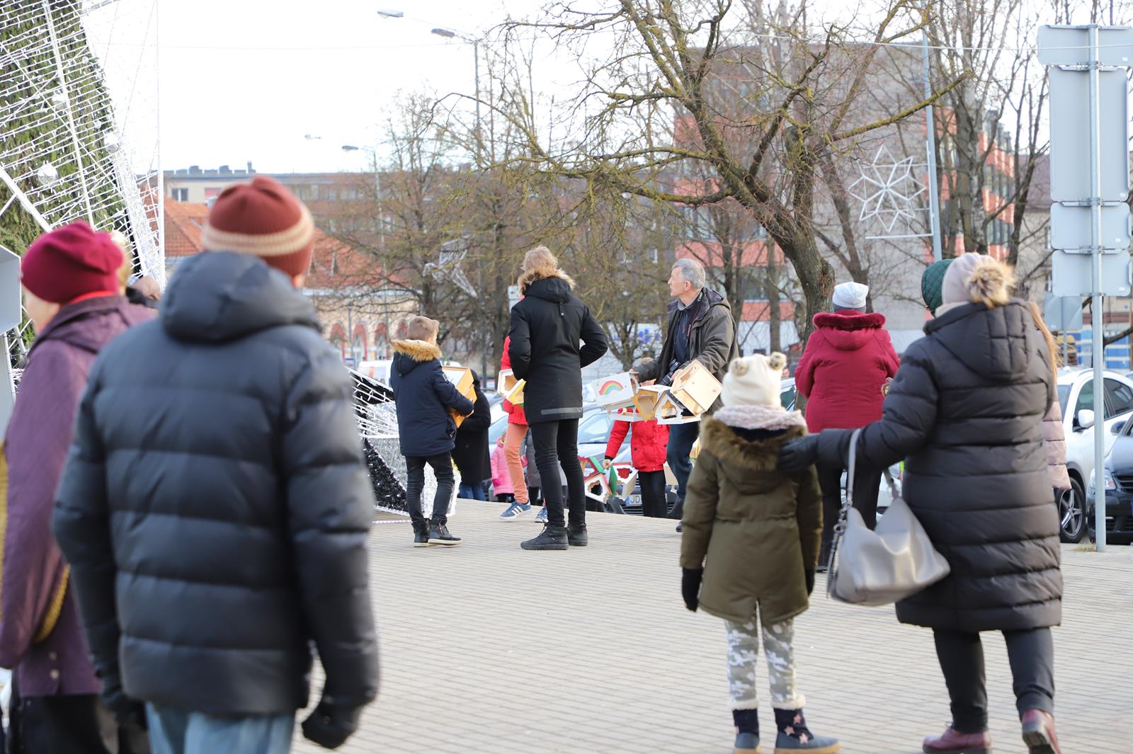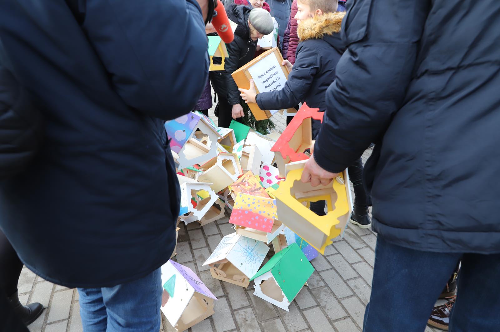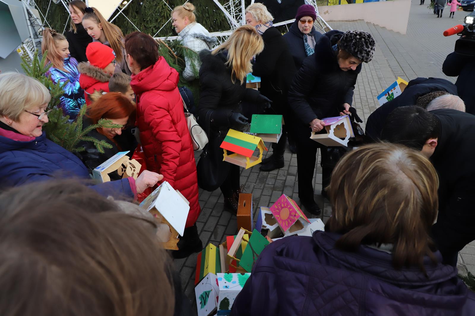 Nešini eglės ar pušies šakomis panevėžiečiai skubėjo prie kalėdinės miesto eglės, kur „Ąžuolo“ progimnazijos jaunojo miško bičiulio būrelio „Miško meistreliai“ nariai kartu su technologijų mokytoju Romu Kupčinsku surengė taip pat tradicine tapusią lesyklėlių dovanojimo akciją. Vos spėjus iškrauti lesyklas ir šiaip ne taip per žmonių būrį vaikams prie jų nusifotografuoti prie jų, dailios, mokinių pagamintos lesyklos buvo iš karto išgraibstytos. Vaikai panevėžiečiams sukalė 100 lesyklų. Vienos jų išpieštos paukščiukais, eglutėmis, kitais motyvais, kitos trispalvės ar kitaip išdažytos. Dar 50 lesyklėlių sausio 10-ąją žadama vežti į Vilnių.