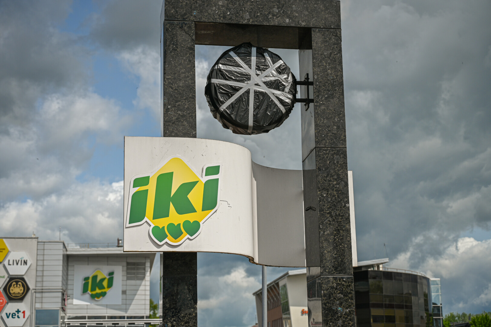 Ilgai gluminęs praeivius, šiomis dienomis laikrodis virto juoda dėme – iš abiejų pusių uždengtas plėvele.